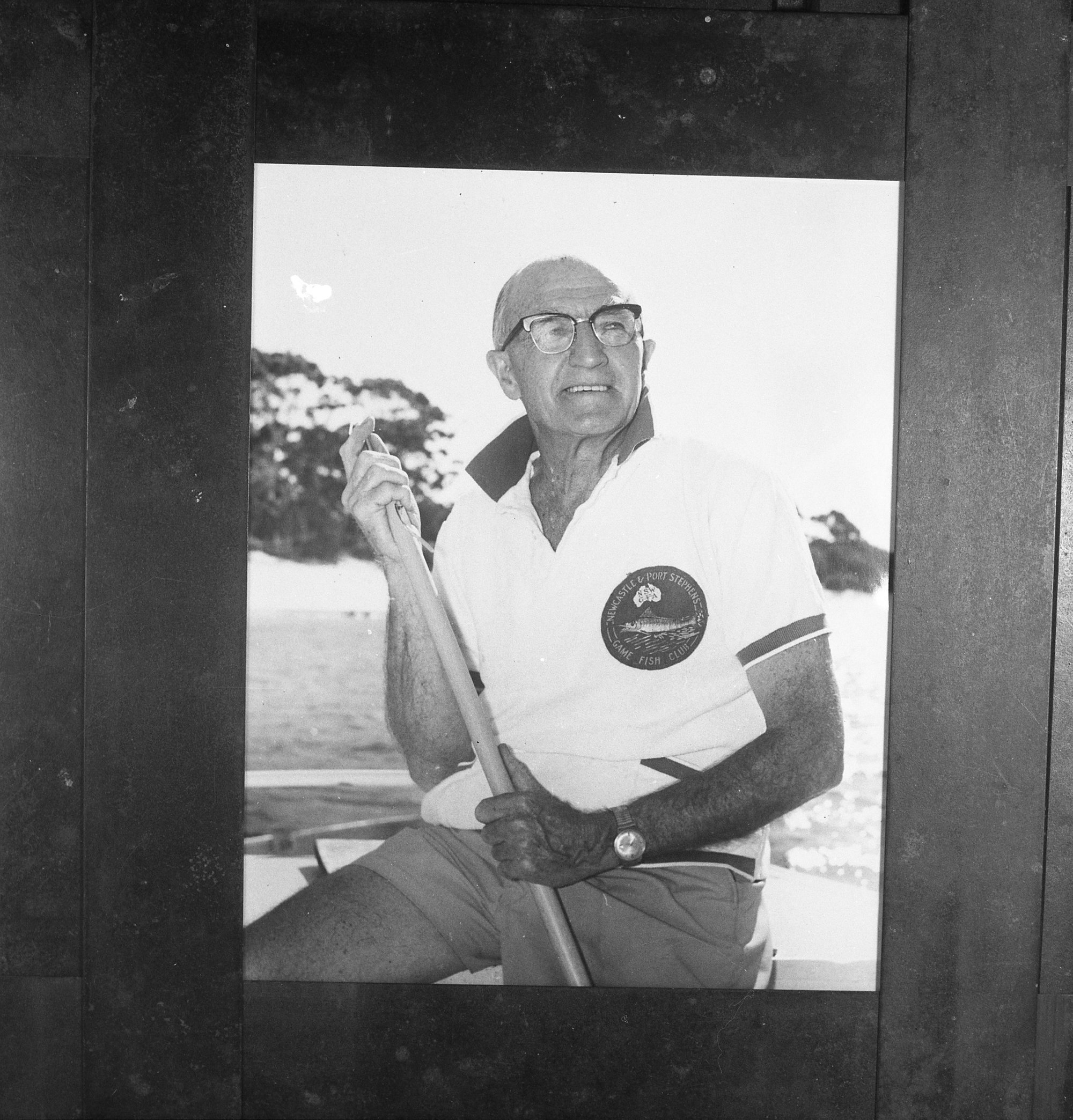 D'Ombrain, Athel, 1901-1985, Athel D'Ombrain at Shoal Bay, NSW - on a boat, [B10405-N2416]. Living Histories, accessed 05/04/2026, https://livinghistories.newcastle.edu.au/nodes/view/12740