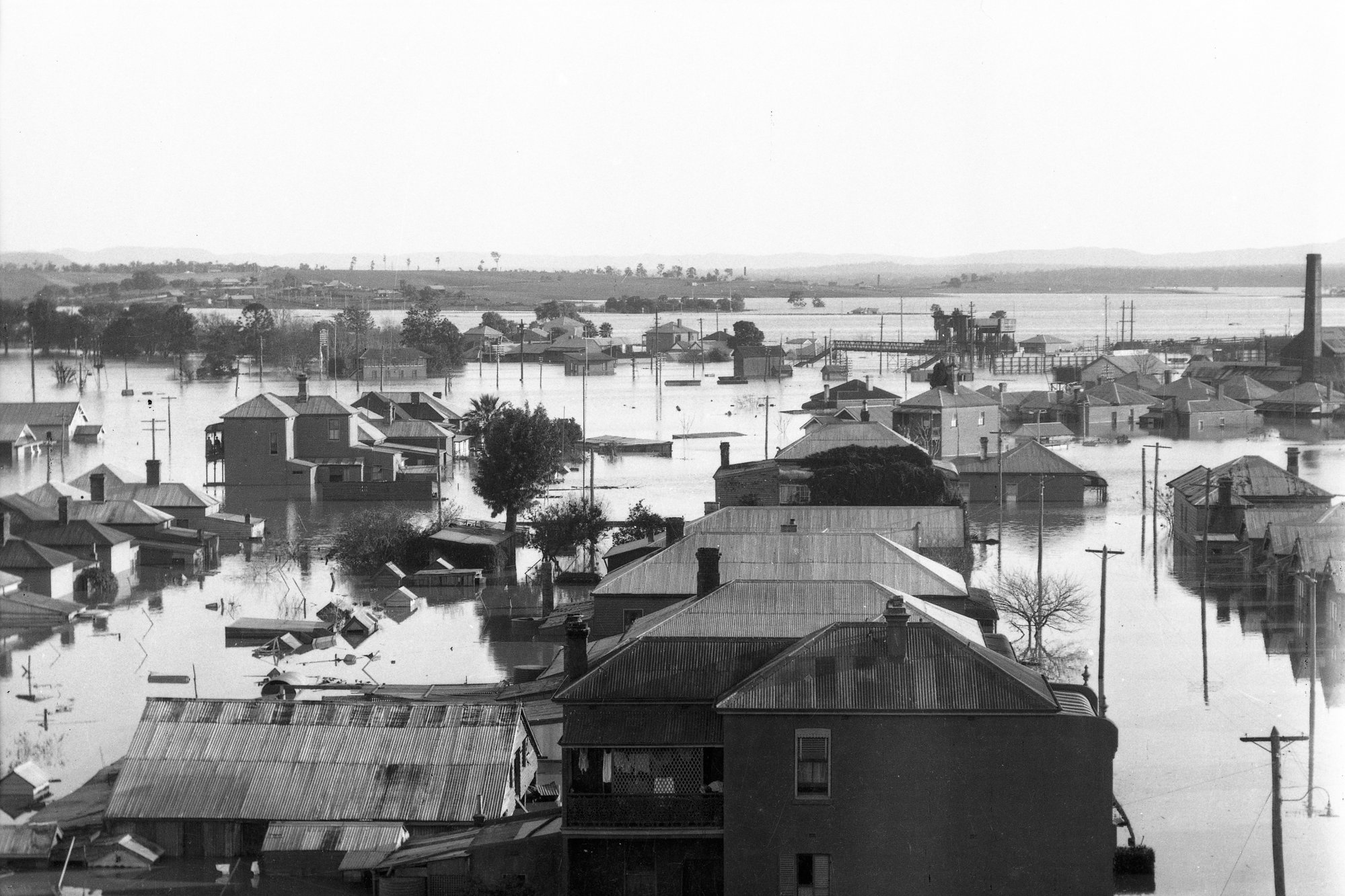 Panorama of Maitland looking across from the Gas Company towards Maitland Park during the 1930 flood