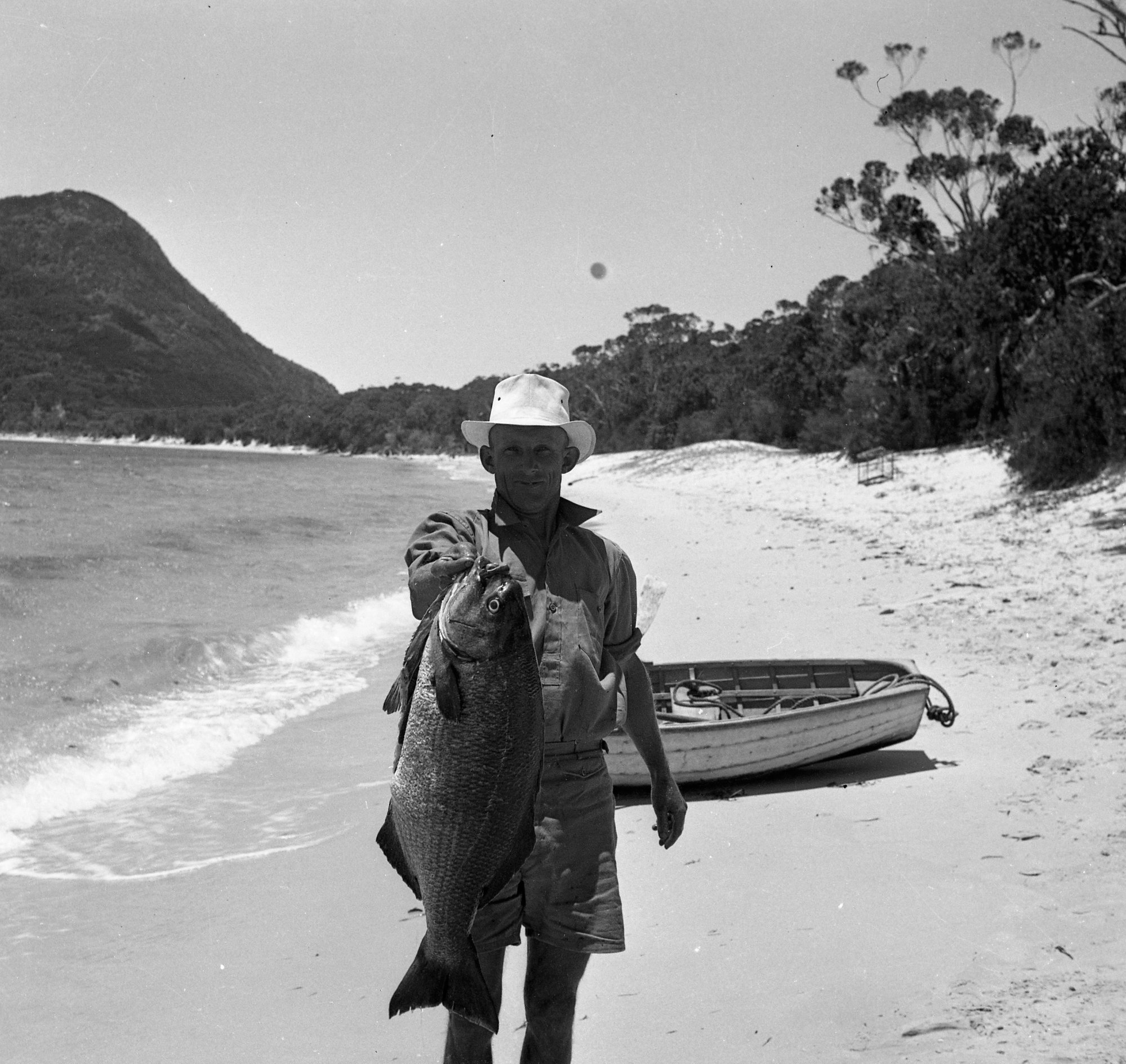 D'Ombrain, Athel, 1901-1985, Game fishing - Ron Duncan holding a 10-12lb silver drummer, [B10405-N2219]. Living Histories, accessed 05/04/2026, https://livinghistories.newcastle.edu.au/nodes/view/13090