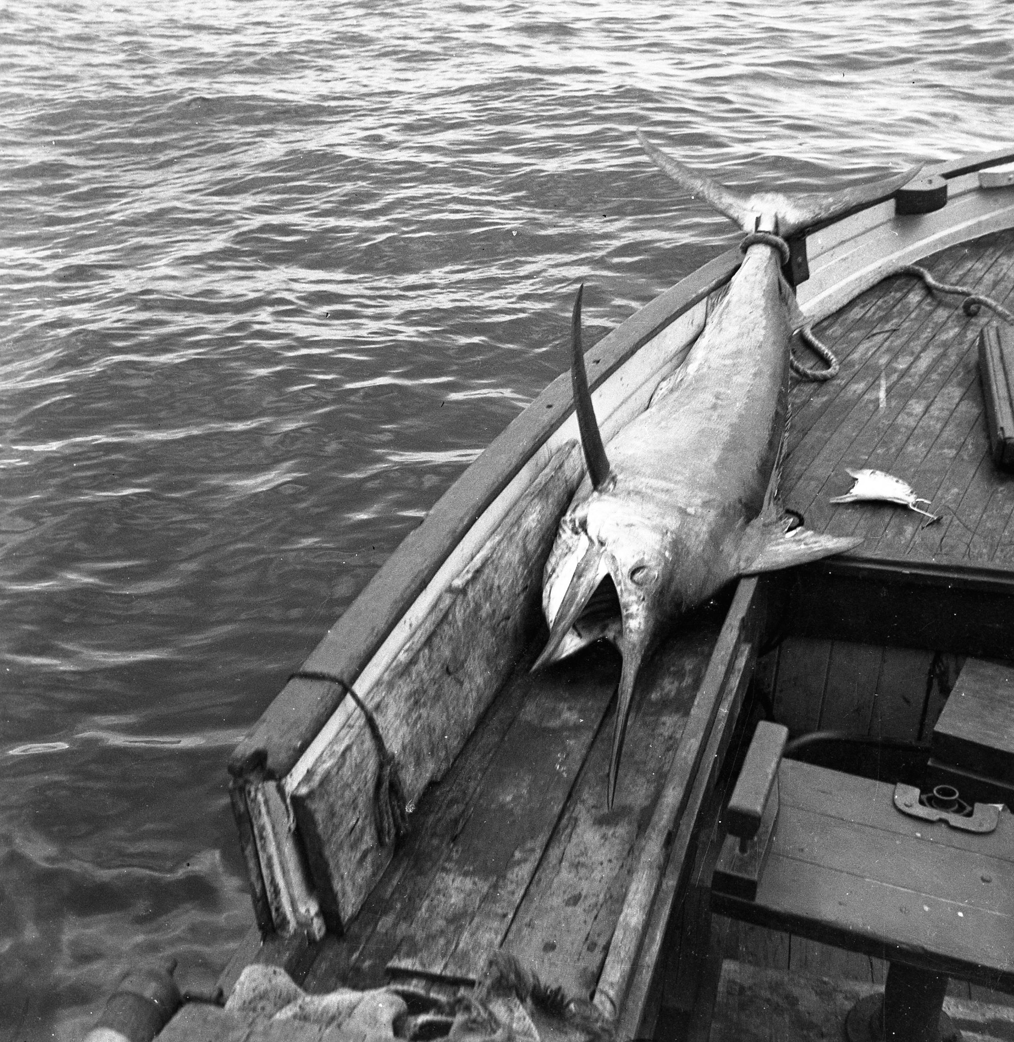 D'Ombrain, Athel, 1901-1985, Game fishing - 180lb black marlin caught off Little Island Port Stephens on Jenson’s boat "Viking", [B10405-N2216]. Living Histories, accessed 15/01/2026, https://livinghistories.newcastle.edu.au/nodes/view/13093