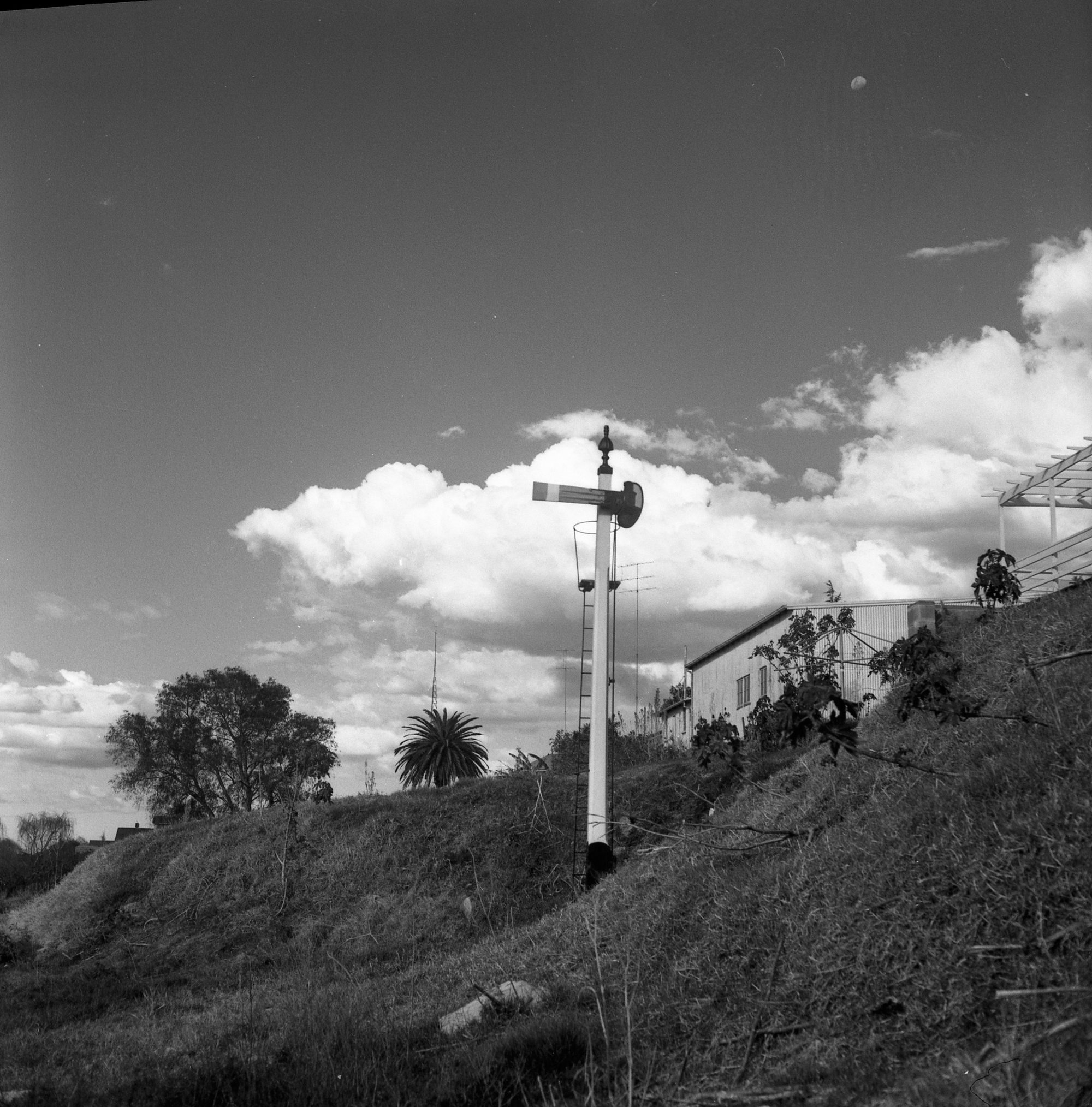 D'Ombrain, Athel, 1901-1985, Railway signal in a garden in a private house at Maitland, NSW, 1972 (1972), [B10402-N1582]. Living Histories, accessed 05/04/2026, https://livinghistories.newcastle.edu.au/nodes/view/13723
