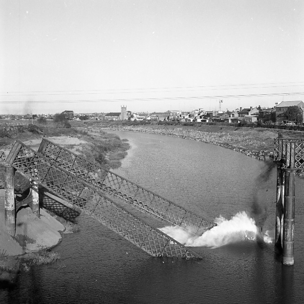 Belmore Bridge, Maitland, NSW, Australia, during demolition, 1965