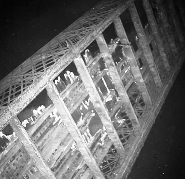 Decking of old Belmore Bridge being burnt during demolition, Maitland, NSW, June 12, 1965