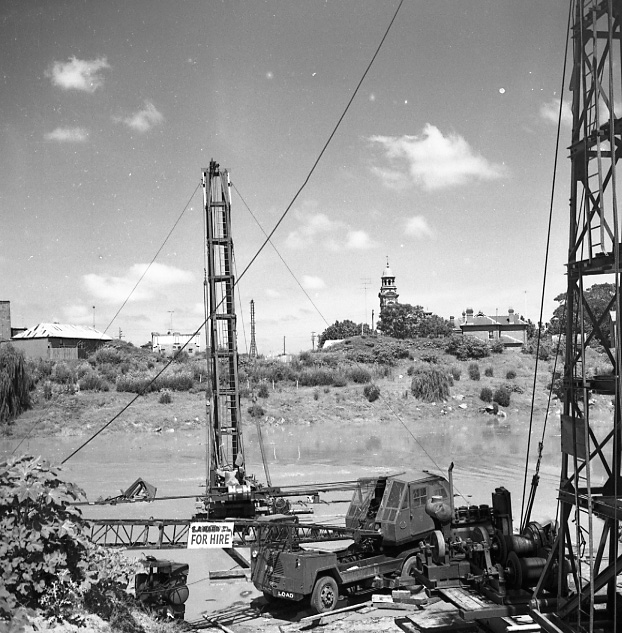 Belmore Bridge, Maitland: Brown's Enterprise Series when the bridge was being built, 1961 - Work on the bridge commences