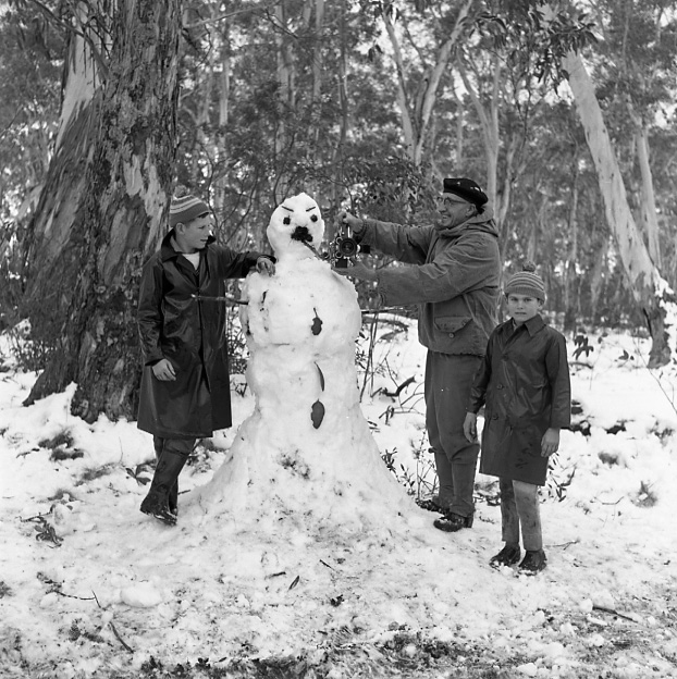 Barrington Tops trip, August, 1960 - building a snow man at Carey’s Peak