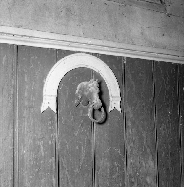 Horse head finial in stables, made of cast iron with hitch, Wallalong House, Hinton, NSW , 1974