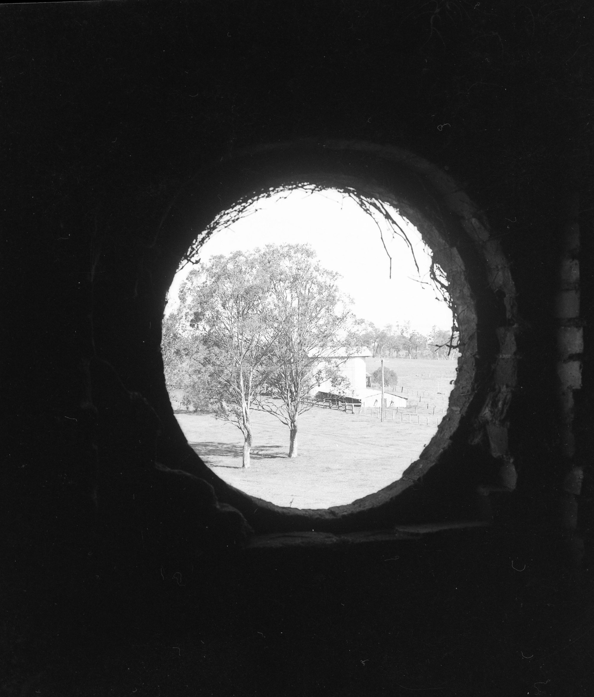 D'Ombrain, Athel, 1901-1985, View through hole in barn, Stradbroke, NSW, [B10399-N0723]. Living Histories, accessed 05/04/2026, https://livinghistories.newcastle.edu.au/nodes/view/14544