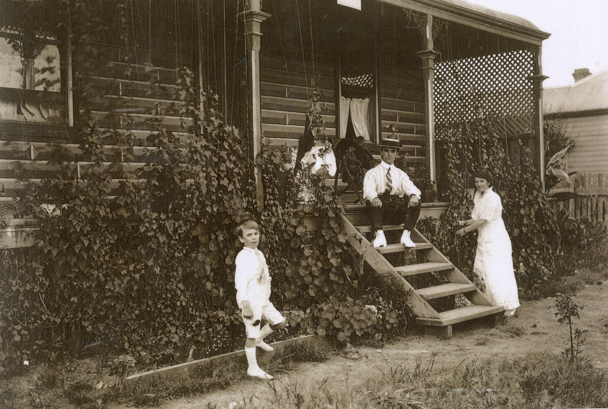 A family outside their home, [CC408]. Living Histories, accessed 17/01/2026, https://livinghistories.newcastle.edu.au/nodes/view/1461