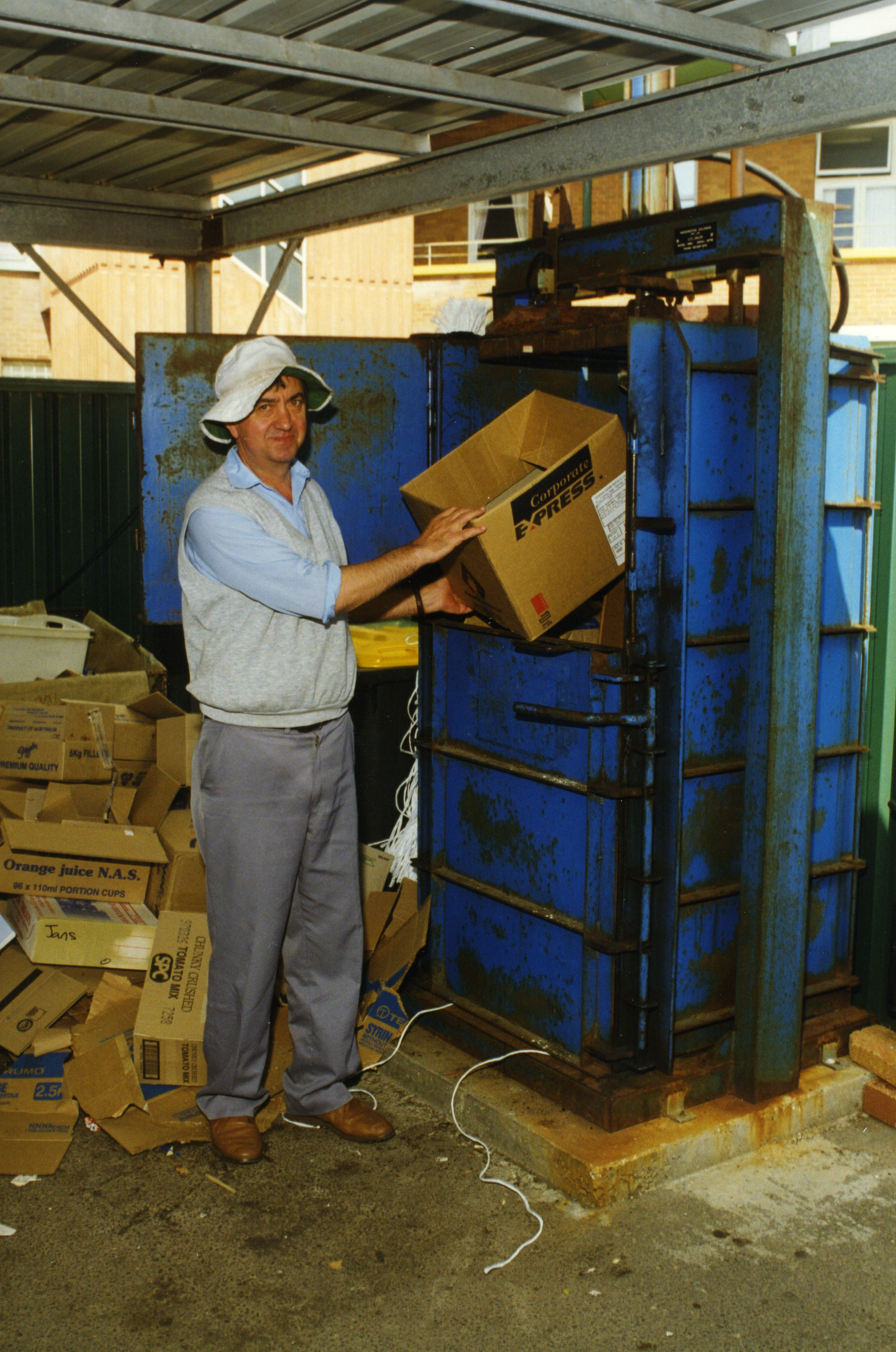 Sorting cardboard for the Royal Newcastle Hospital's recycling initiative, Newcastle, NSW, 1997 (1997), [A9012(lviii)e]. Living Histories, accessed 15/01/2026, https://livinghistories.newcastle.edu.au/nodes/view/15492