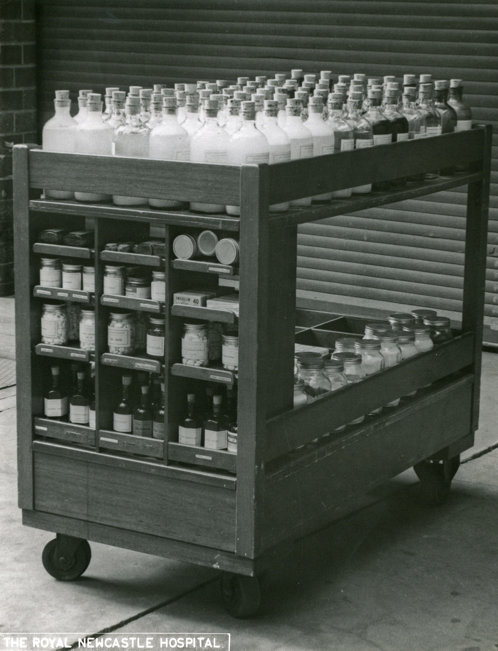 Mobile medication trolley, Royal Newcastle Hospital's Pharmacy, Newcastle, NSW, [A9012(xliv)j]. Living Histories, accessed 18/03/2026, https://livinghistories.newcastle.edu.au/nodes/view/15615