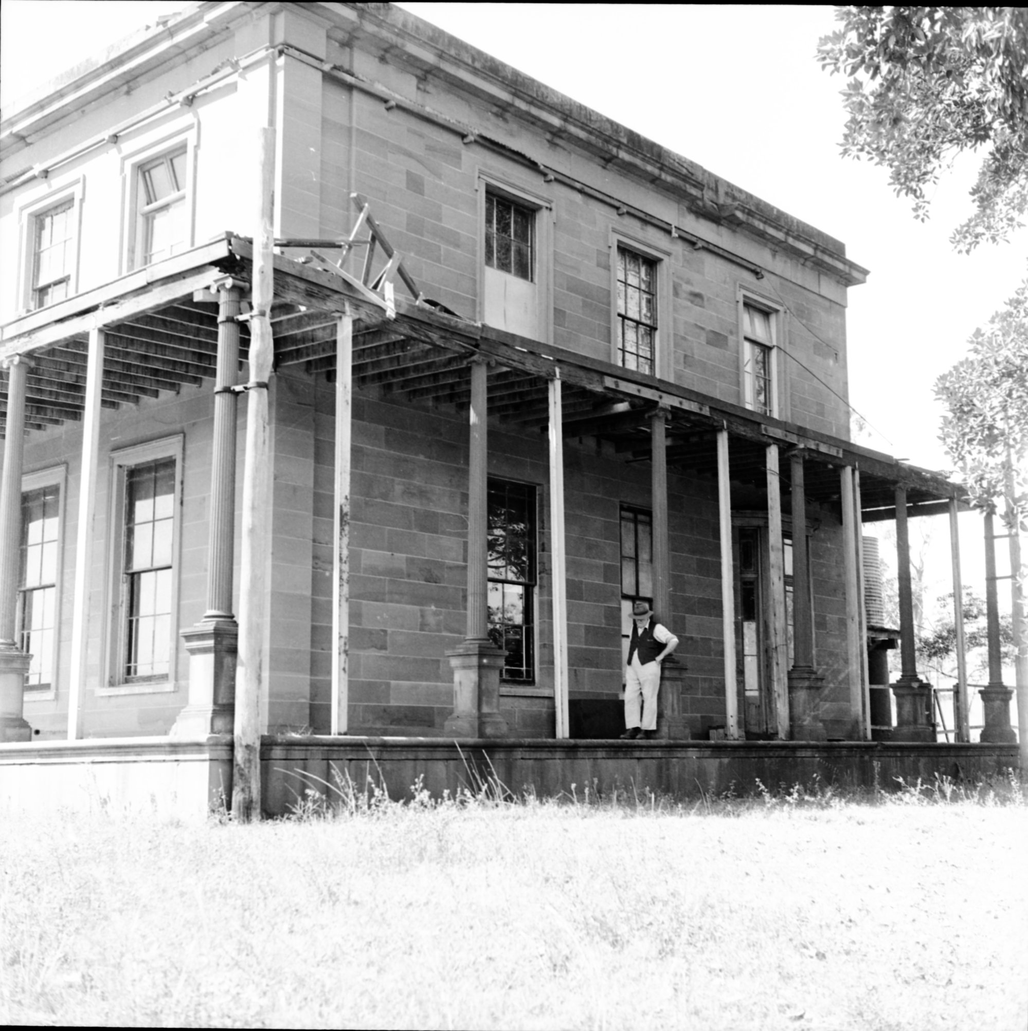 D'Ombrain, Athel, 1901-1985, Man on verandah, Aberglasslyn House, Aberglasslyn, NSW, March 24 1961 (24th March 1961), [B10397-N0006]. Living Histories, accessed 05/04/2026, https://livinghistories.newcastle.edu.au/nodes/view/15974