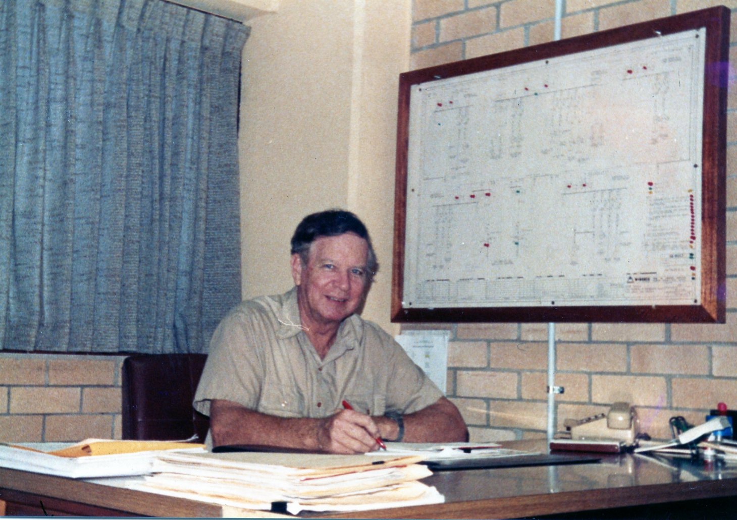 Jack Keily in his office at Mount Thorley Colliery, NSW, Australia - c. 1987