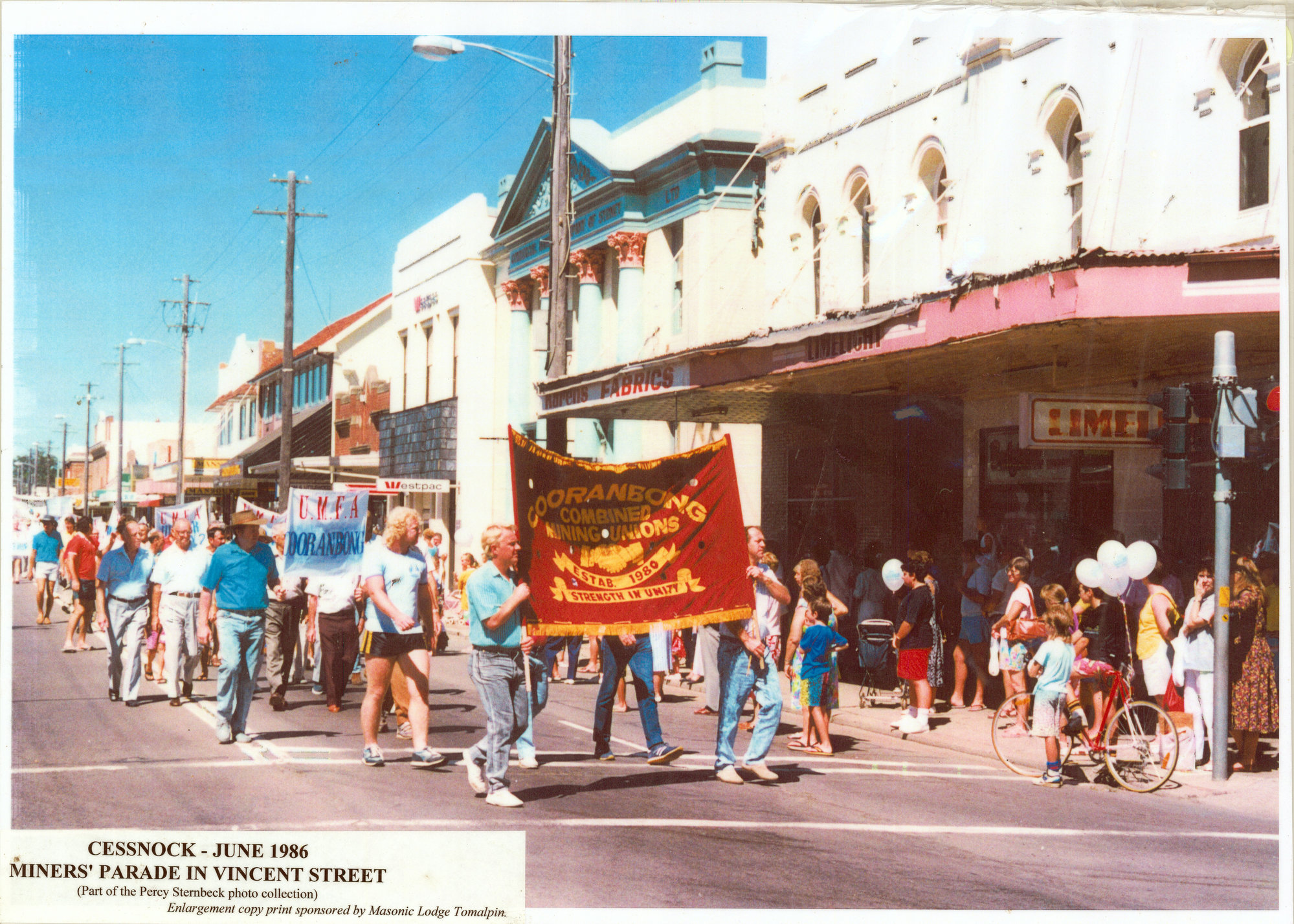 Sternbeck, Percival William, 1921-2004, Miners' Parade, Vincent Street, Cessnock, 1986 (1986). Living Histories, accessed 13/03/2026, https://livinghistories.newcastle.edu.au/nodes/view/1660