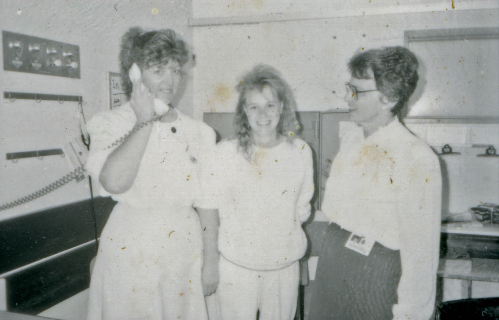 Jane Broadbent, right, with unidentified hospital staff at the Royal Newcastle Hospital, Newcastle, NSW, [1980s] ([1980s]), [A9011(xlix)m]. Living Histories, accessed 08/02/2026, https://livinghistories.newcastle.edu.au/nodes/view/16885