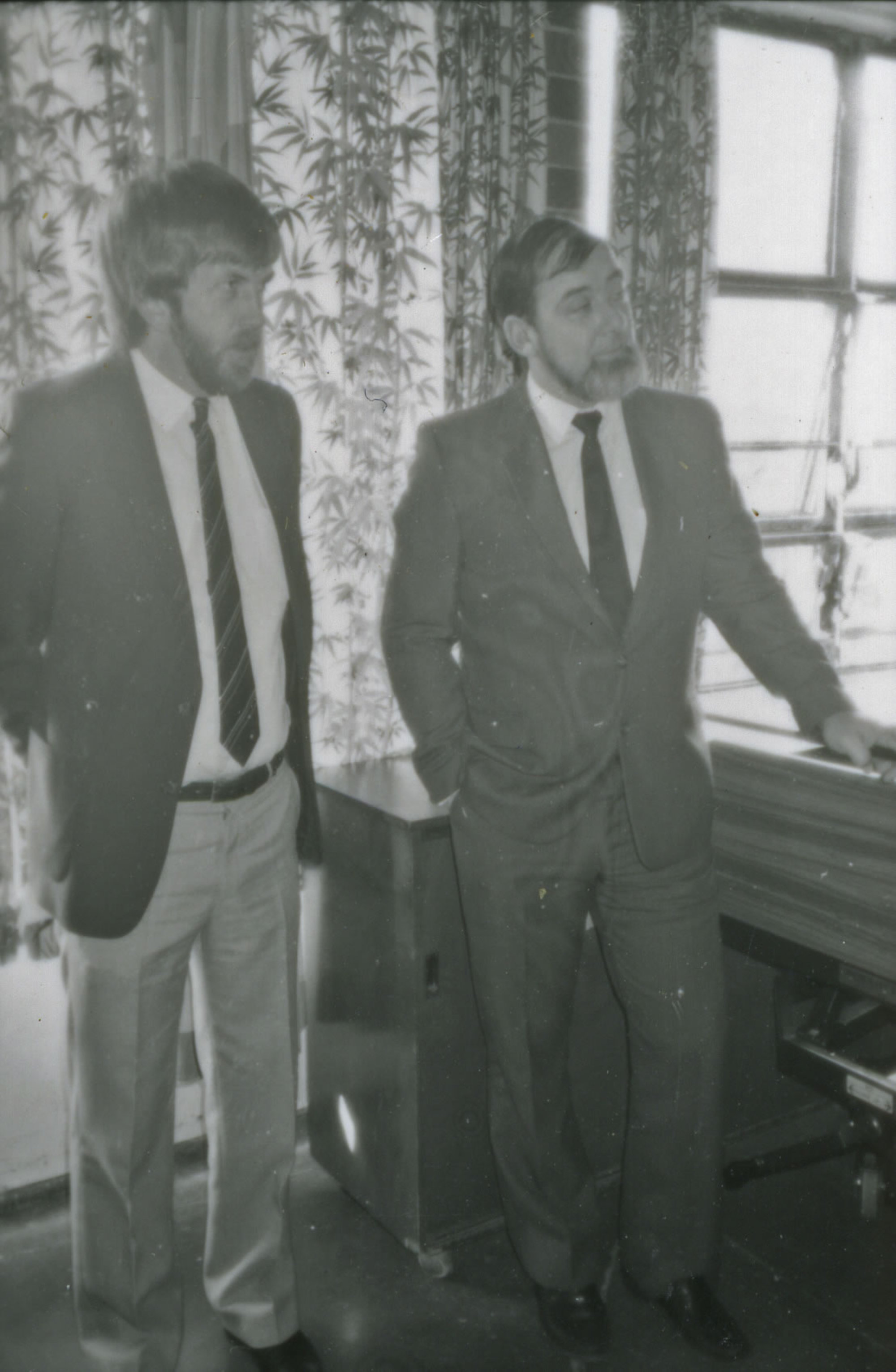 Two unidentified men, at the launch of new hospital beds, Royal Newcastle Hospital, Newcastle, NSW, [A9011(lix)jj]. Living Histories, accessed 10/03/2026, https://livinghistories.newcastle.edu.au/nodes/view/17157