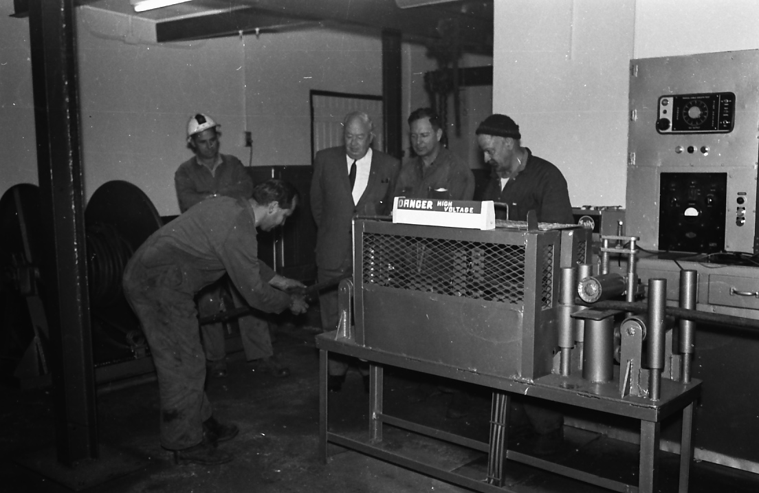 Howard, Barry, From left: unidentified worker, Aub Mascord, Bede Kelly, Jack Keily, unidentified worker in the new cable repair shop at Northern (Rhondda) Colliery, mid 1960s, by Barry Howard ([1960s]), [Rhondda120]. Living Histories, accessed 10/02/2026, https://livinghistories.newcastle.edu.au/nodes/view/18334