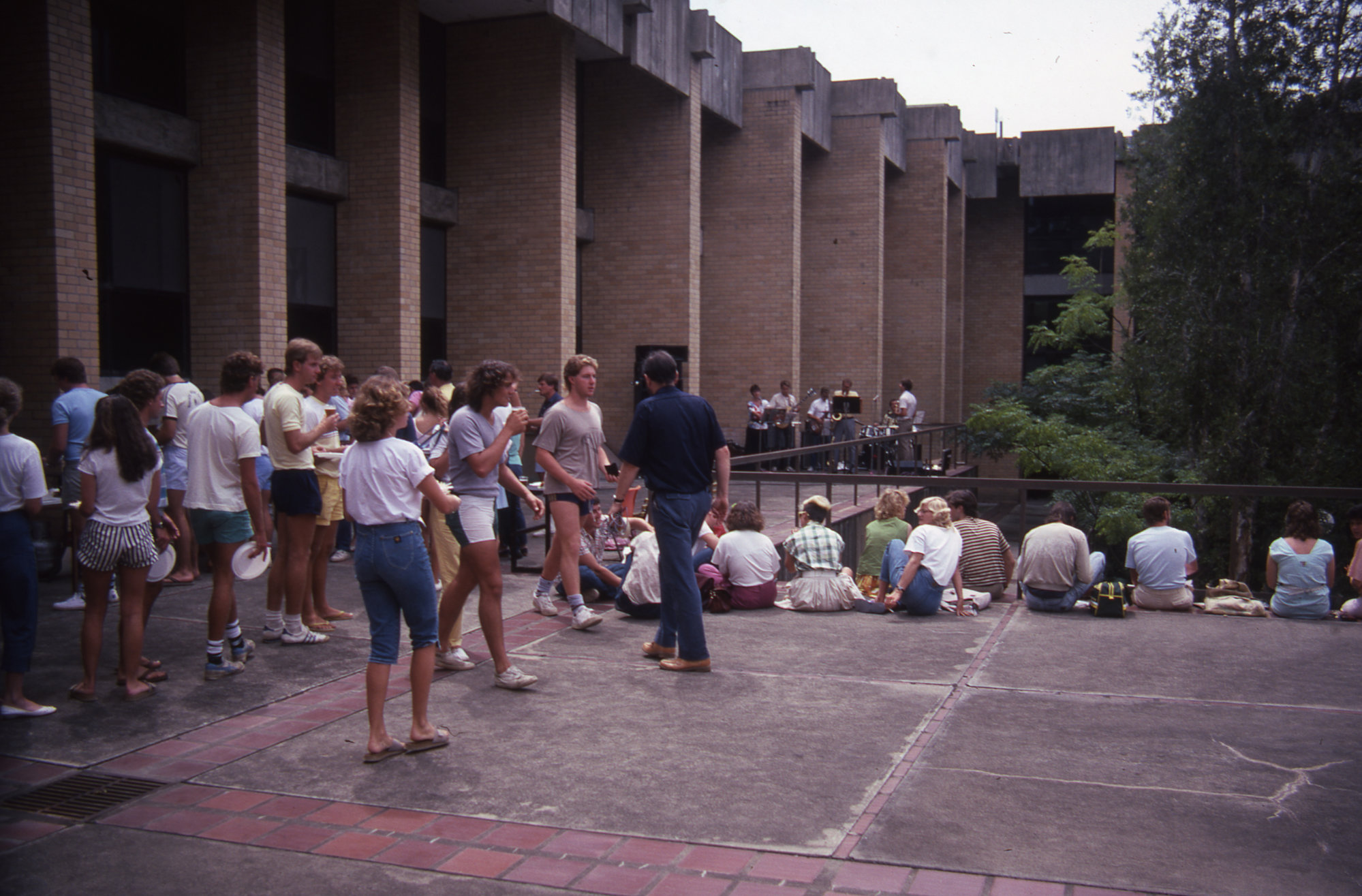 Medical Communication Unit, University of Newcastle, Australia, Students, [Newcastle College of Advanced Education], [1985] (1985), [MCU-Students-Courtyard005]. Living Histories, accessed 20/03/2026, https://livinghistories.newcastle.edu.au/nodes/view/1883
