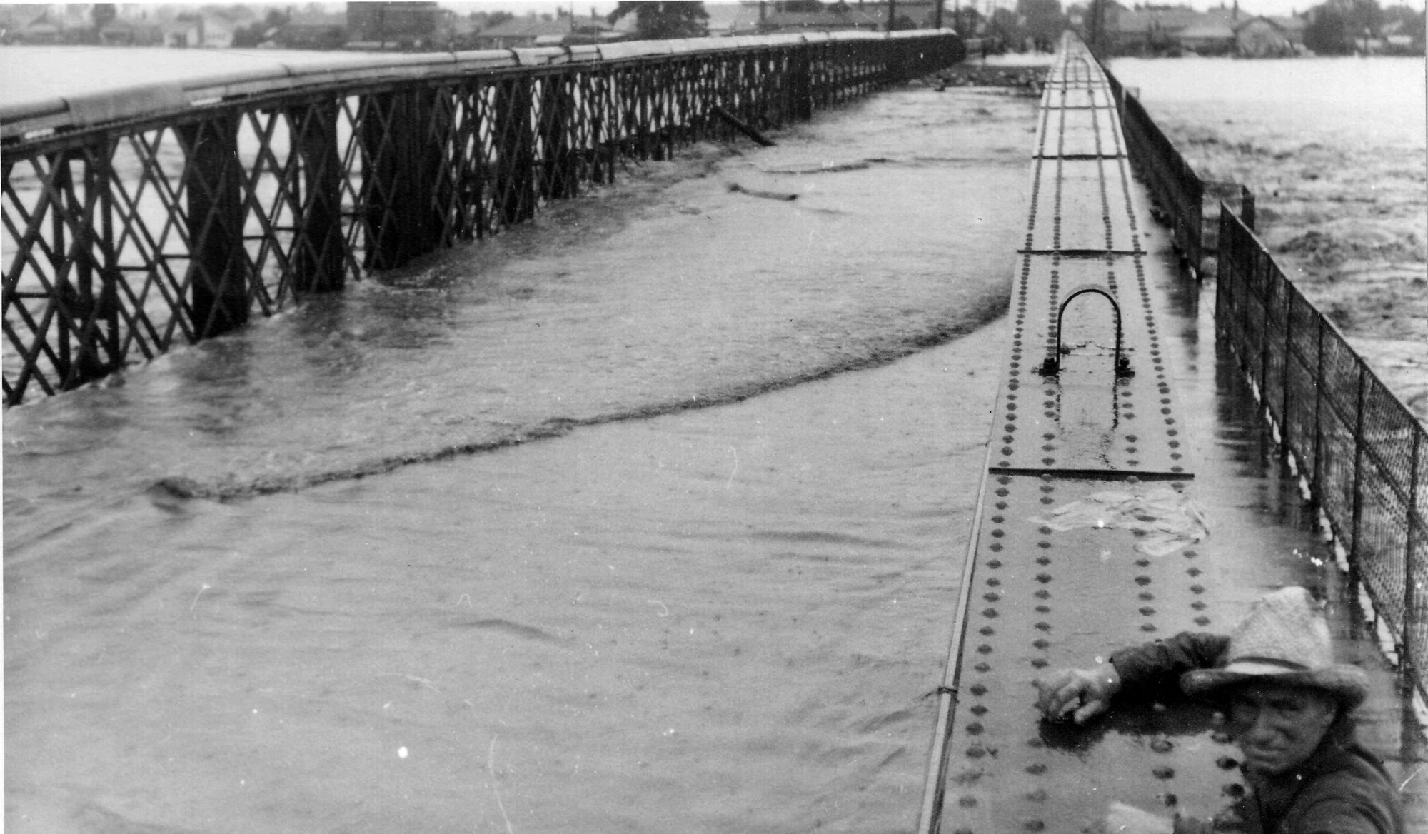 Flooded bridge - 1955 Flood - Maitland, NSW, Australia (1955), [Print0014c]. Living Histories, accessed 04/04/2026, https://livinghistories.newcastle.edu.au/nodes/view/19029