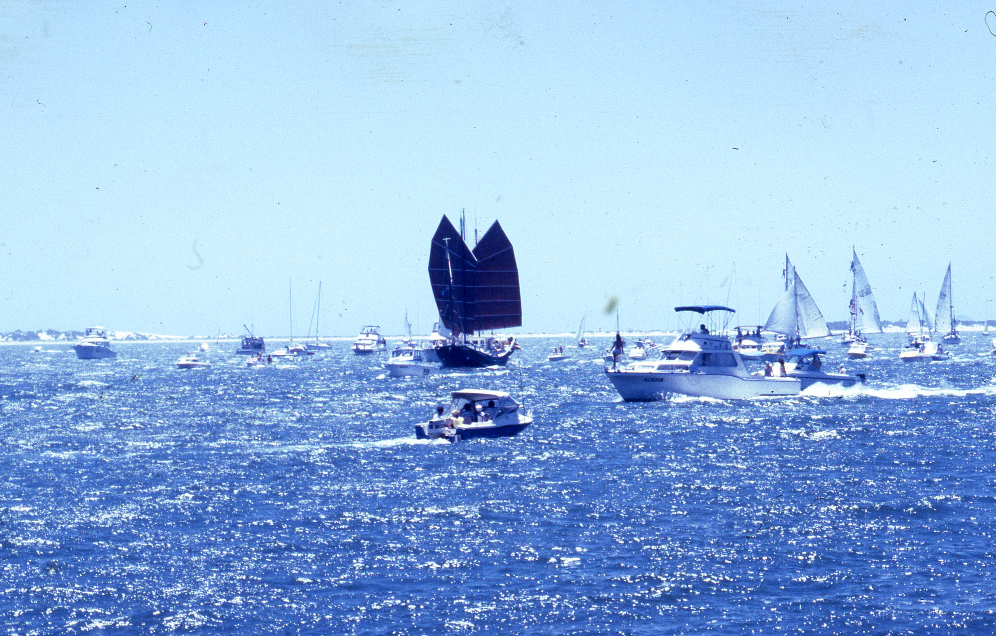Medical Communication Unit, University of Newcastle, Australia, Chinese-style junk on ocean with other boats, [MCU-SailBoat001]. Living Histories, accessed 16/04/2026, https://livinghistories.newcastle.edu.au/nodes/view/1929
