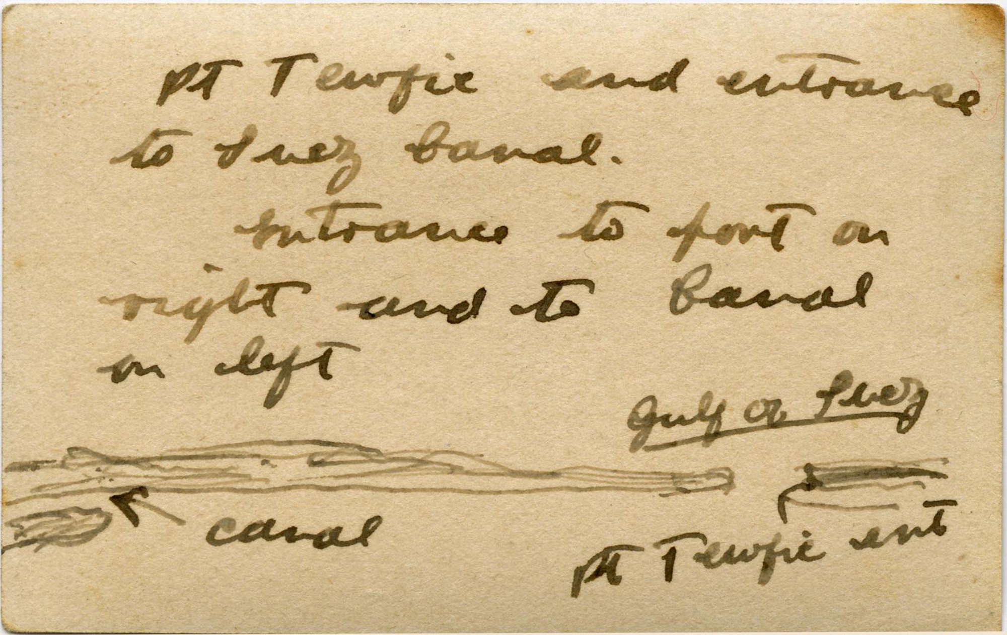 Verso of photograph showing Pt. Tewfic and entrance to Suez