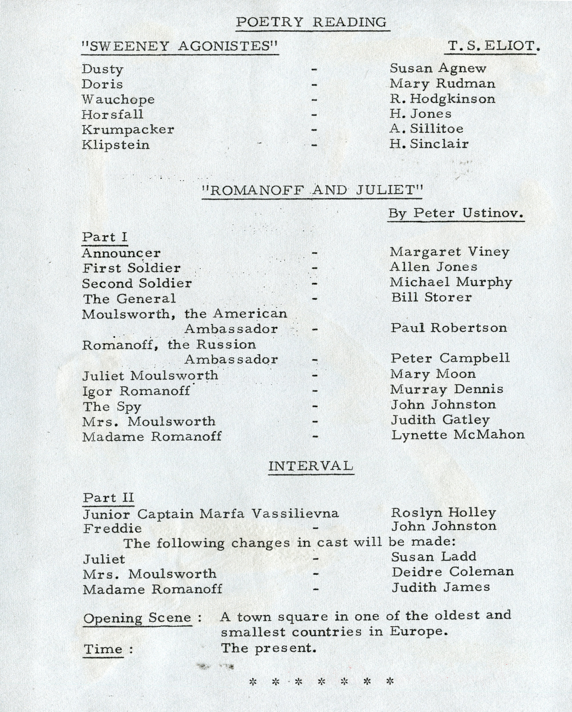 Plays and Poetry - Programme (Page Two), Newcastle Teachers' College, NSW, Australia - c. 1964 (1964), [B16481-1964060b]. Living Histories, accessed 13/03/2026, https://livinghistories.newcastle.edu.au/nodes/view/19411