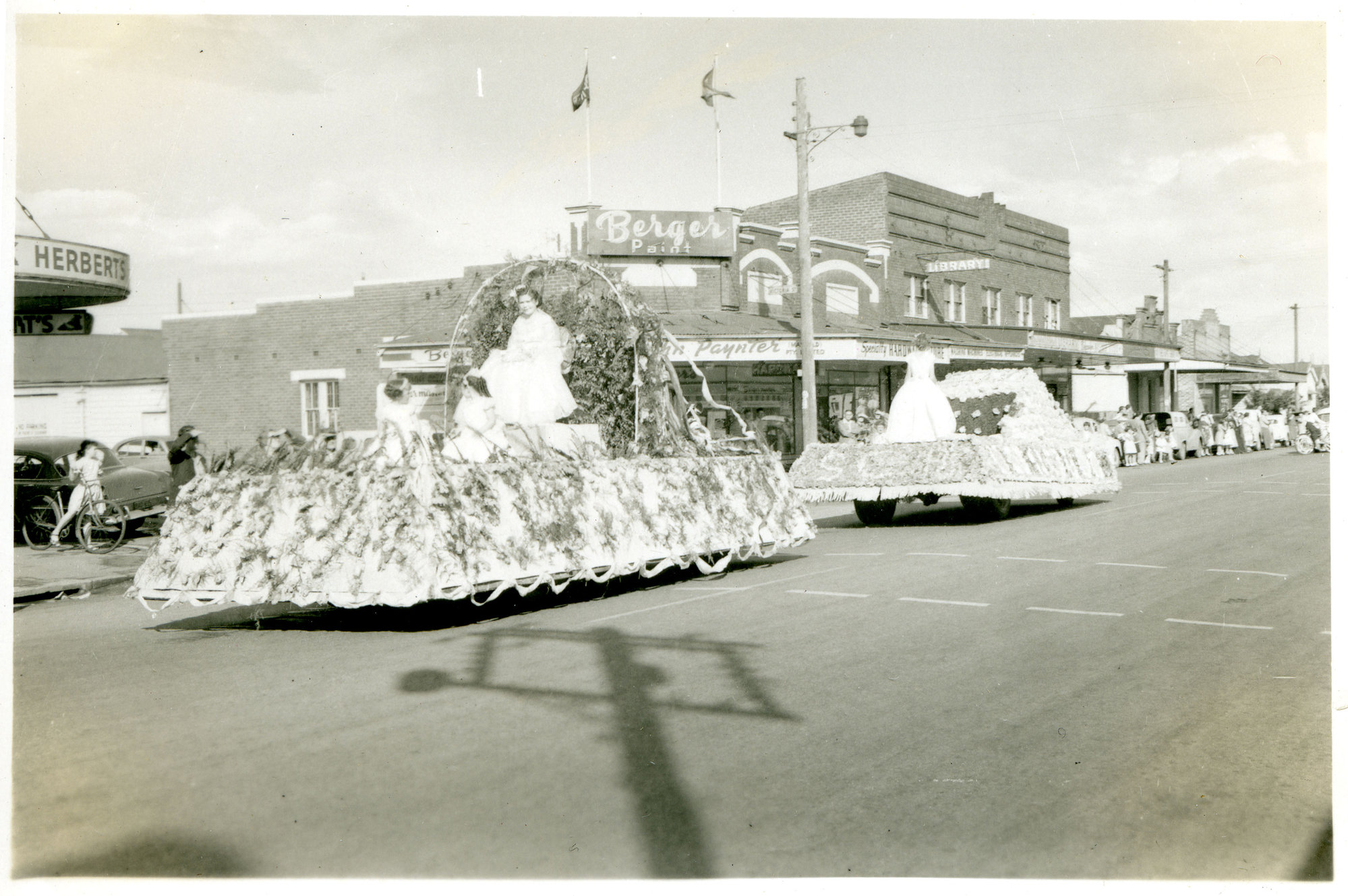 Mayfield Spring Festival parade to Dangar Park, Mayfield, NSW, [1960s?] ([1960s]), [dbrown-album-9-015]. Living Histories, accessed 18/03/2026, https://livinghistories.newcastle.edu.au/nodes/view/1954