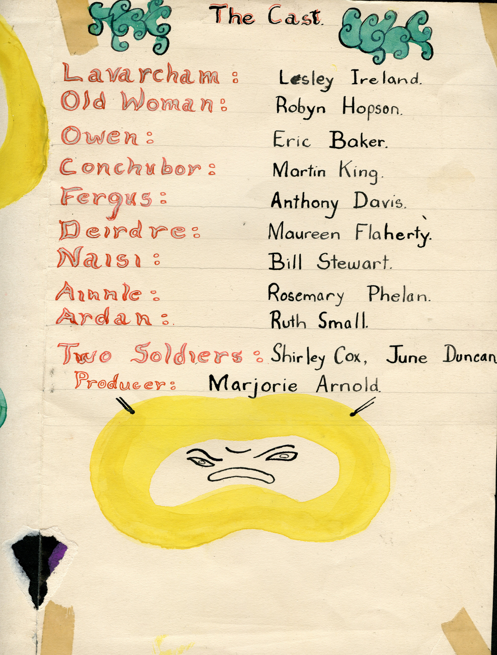 Deirdre of the Sorrows - Programme (Page Two), Newcastle Teachers' College, NSW, Australia - 1956 (1956), [B16481-1956041b]. Living Histories, accessed 09/03/2026, https://livinghistories.newcastle.edu.au/nodes/view/19584