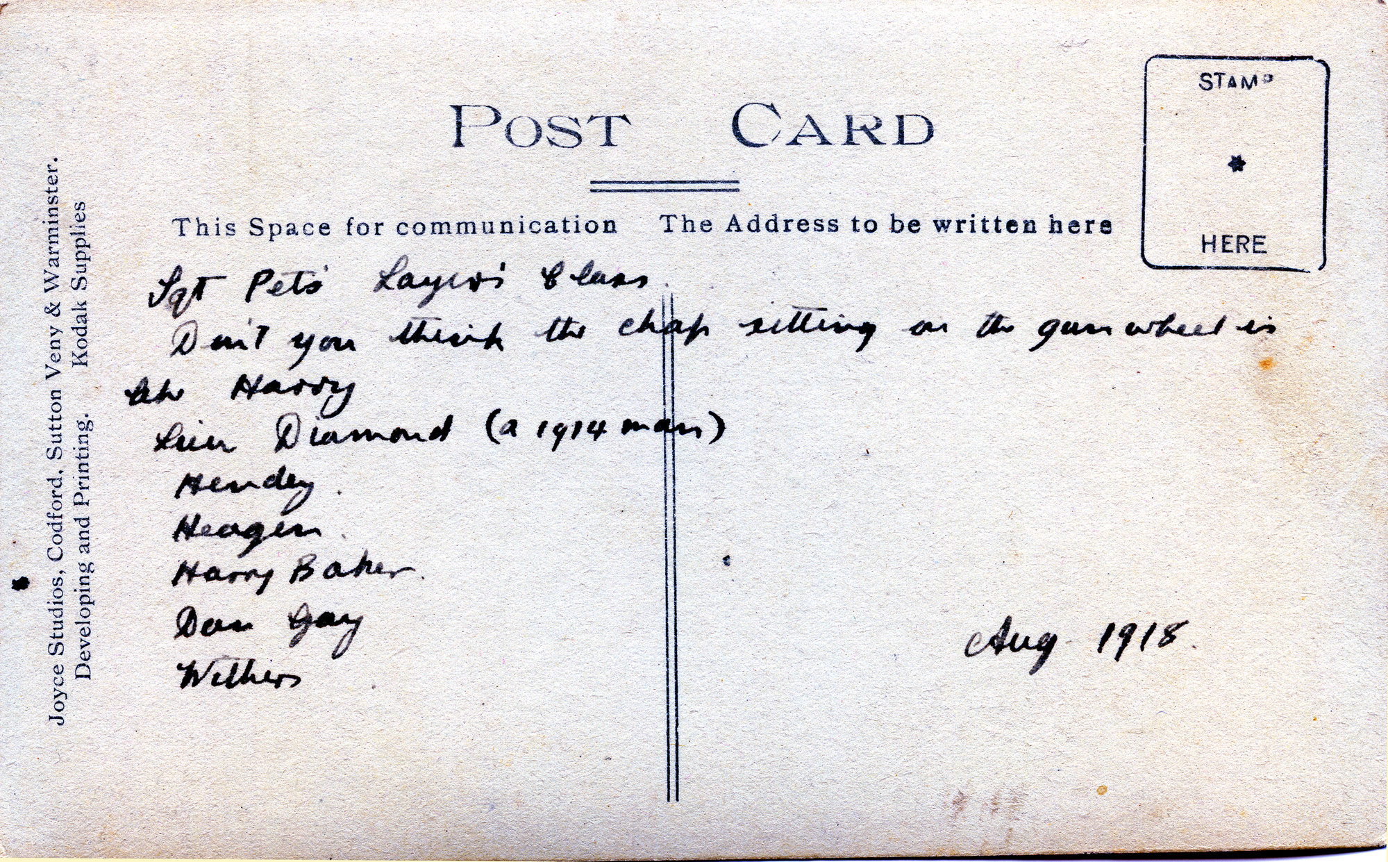 Australian gunners, August 1918 (verso) (1918-08), [A8275(vii)]. Living Histories, accessed 16/04/2026, https://livinghistories.newcastle.edu.au/nodes/view/19721