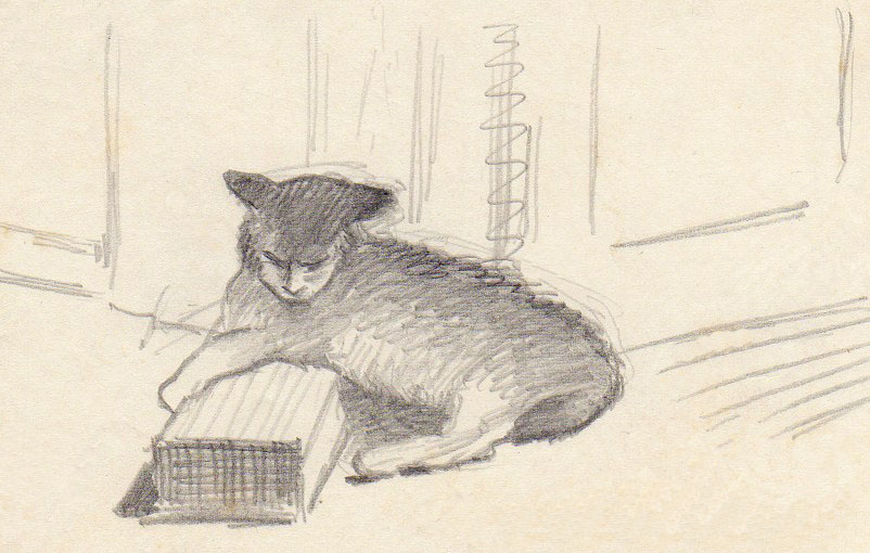 Pugmire, Harry, 1901-1971, Sketch of a cat by Harry Pugmire, [408]. Living Histories, accessed 19/03/2026, https://livinghistories.newcastle.edu.au/nodes/view/20106