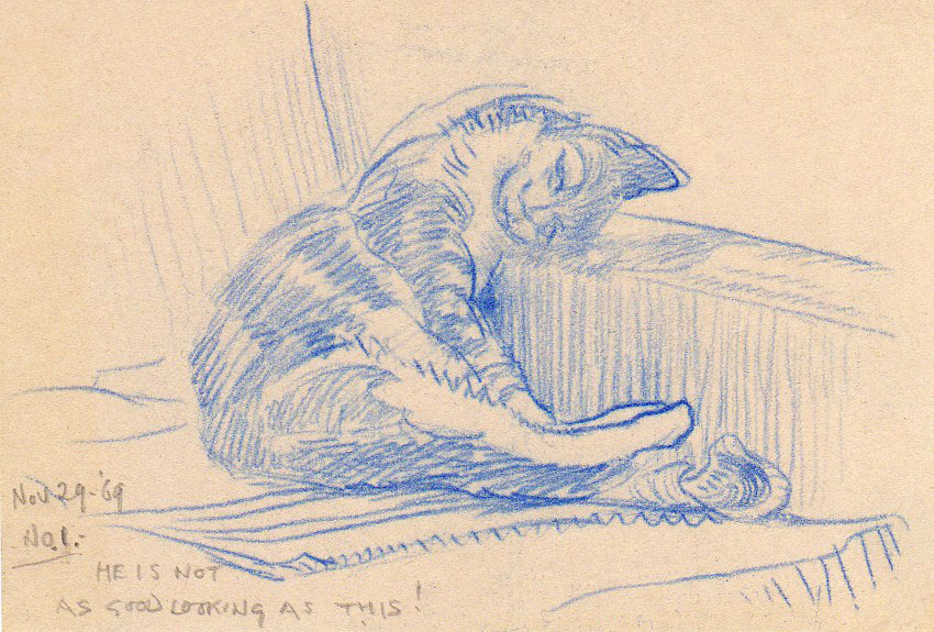 "He is not as good looking as this!" Sketch of a cat by Harry Pugmire