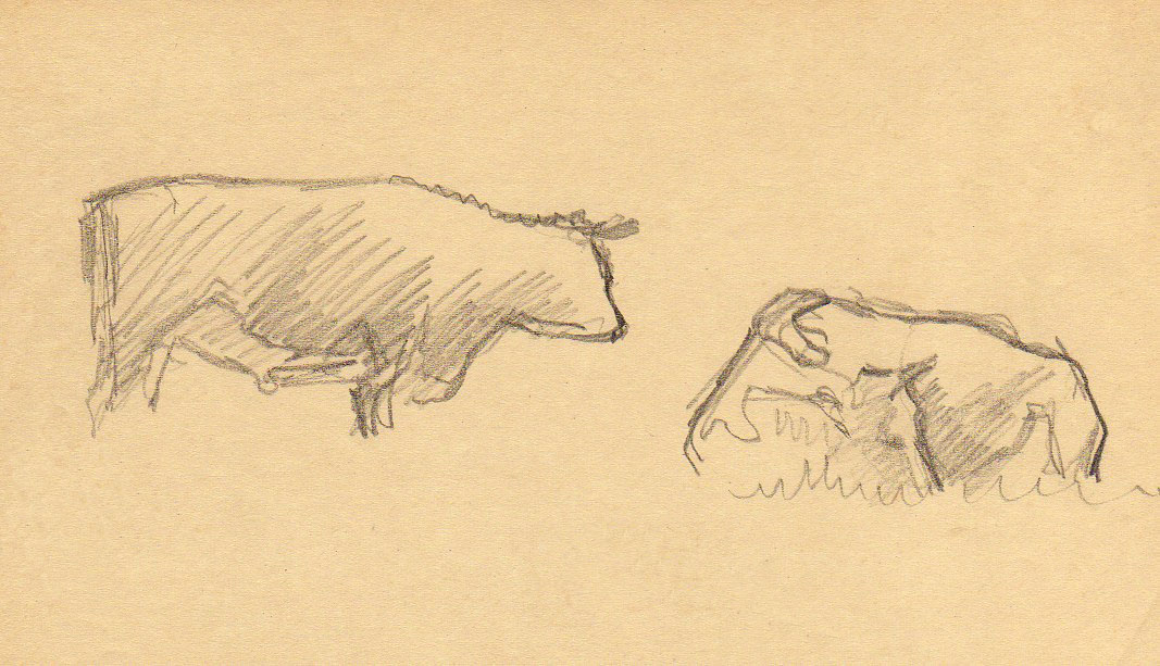 Pugmire, Harry, 1901-1971, Sketch of a bull and cow - Artwork by Harry Pugmire, [358]. Living Histories, accessed 17/04/2026, https://livinghistories.newcastle.edu.au/nodes/view/20159
