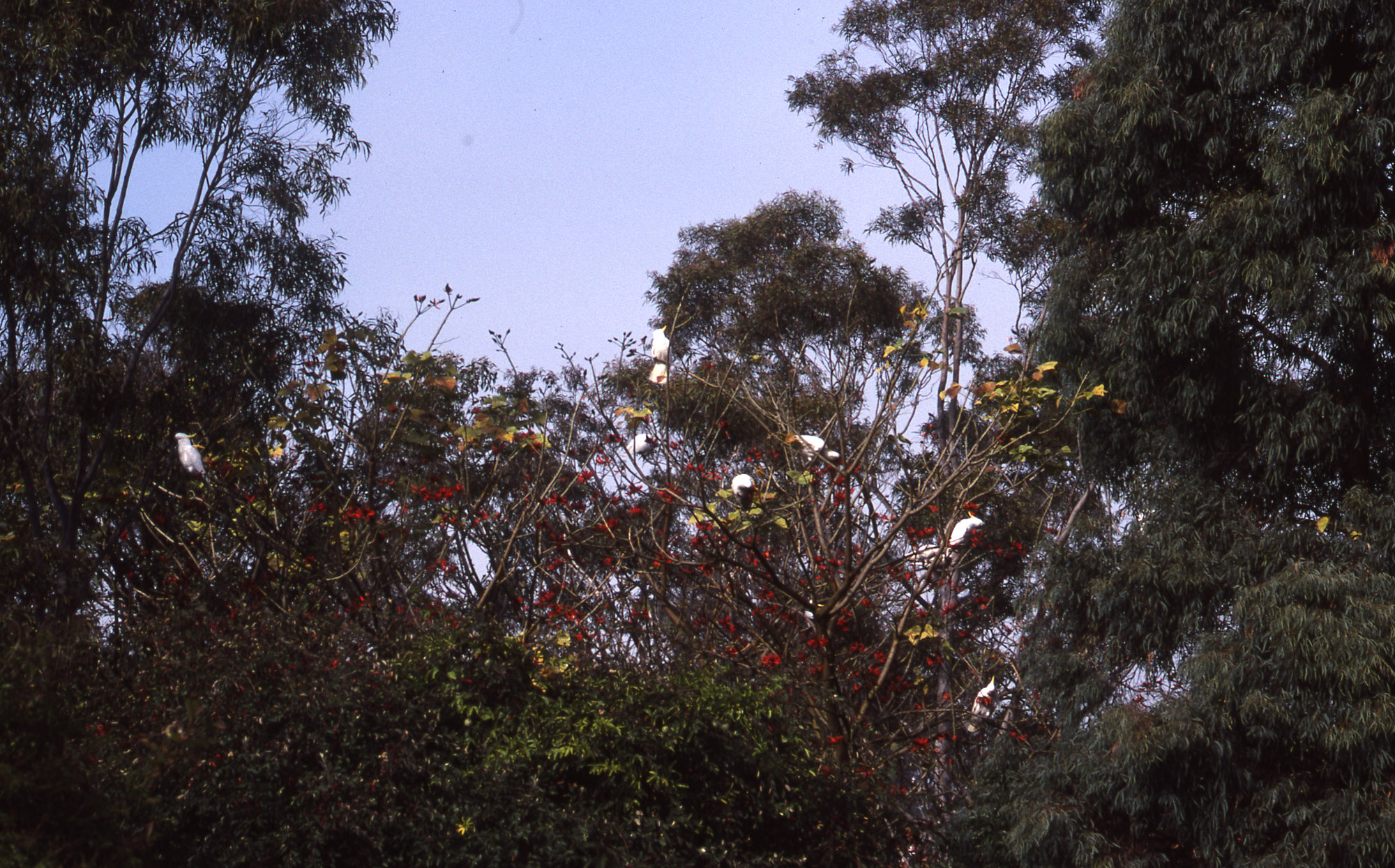 Medical Communication Unit, University of Newcastle, Australia, White cockatoos on tree, [MCU-WhiteCockatoo004]. Living Histories, accessed 16/04/2026, https://livinghistories.newcastle.edu.au/nodes/view/2063