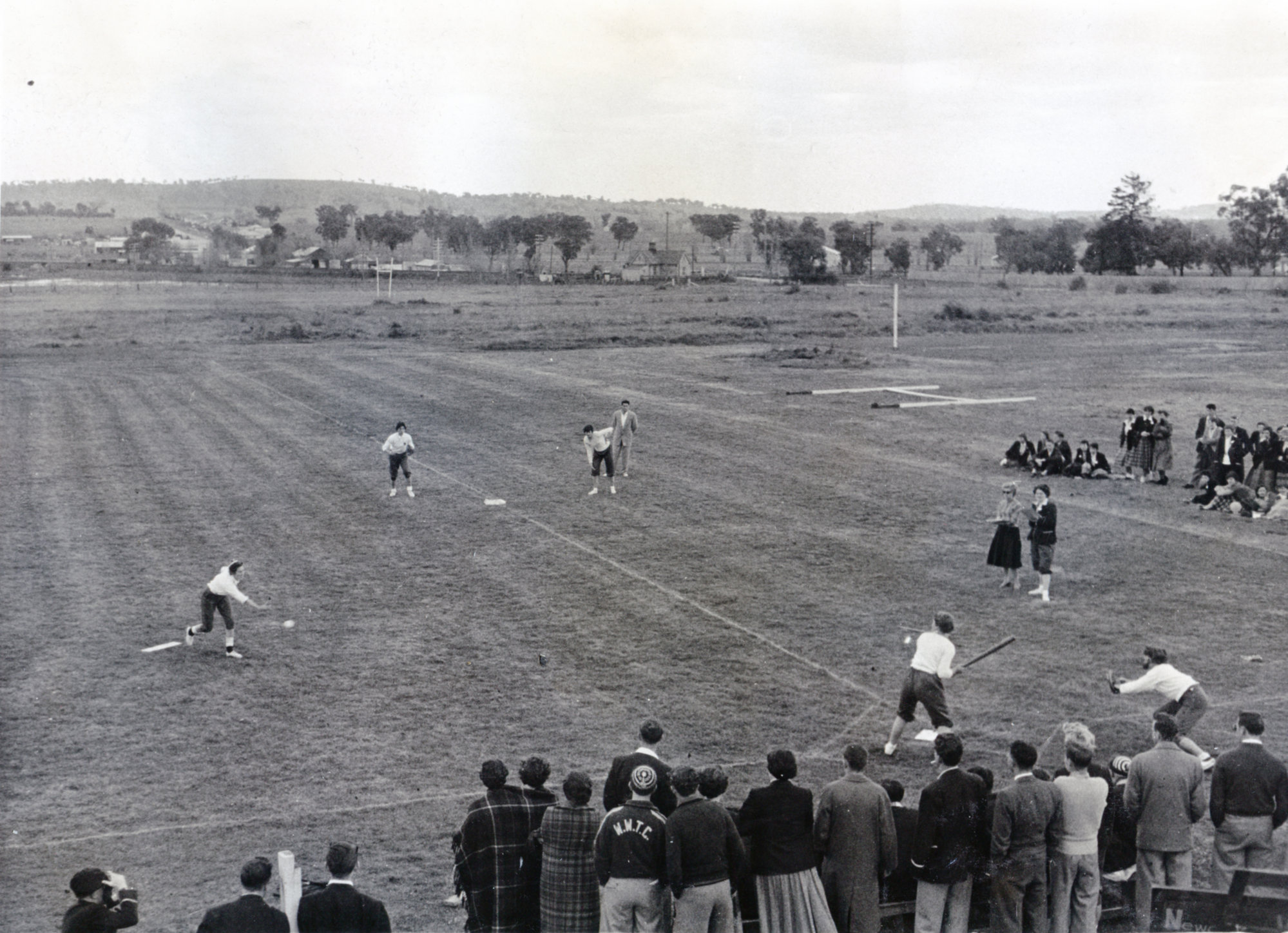 Wagga Inter-Collegiate - Baseball. Photo from Newcastle Teachers' College Album, NSW, Australia - 1956 (1956), [B164756-1956014]. Living Histories, accessed 17/02/2026, https://livinghistories.newcastle.edu.au/nodes/view/20902