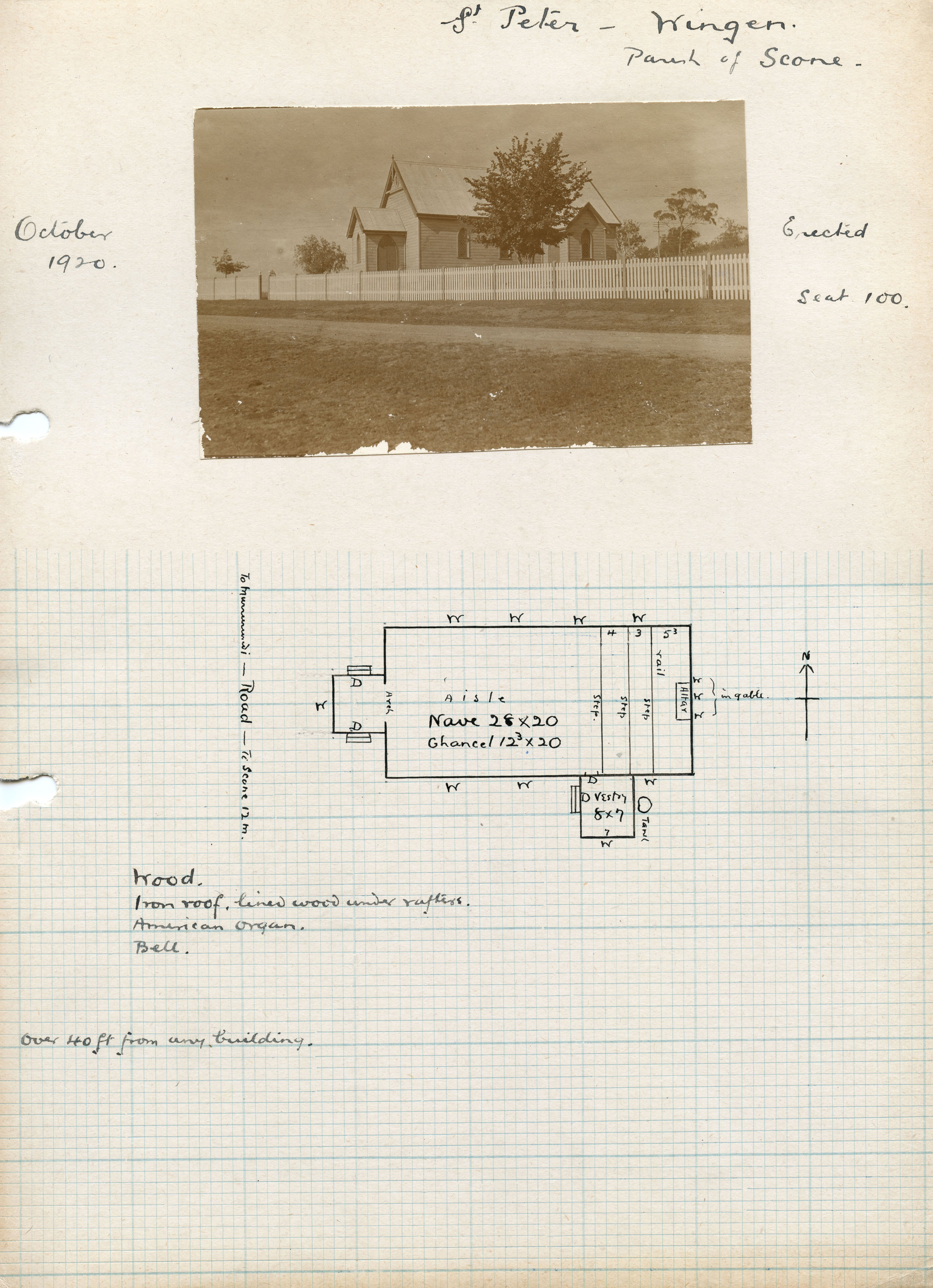 Plan of St. Peter's Church, situated in Wingen, NSW, Australia