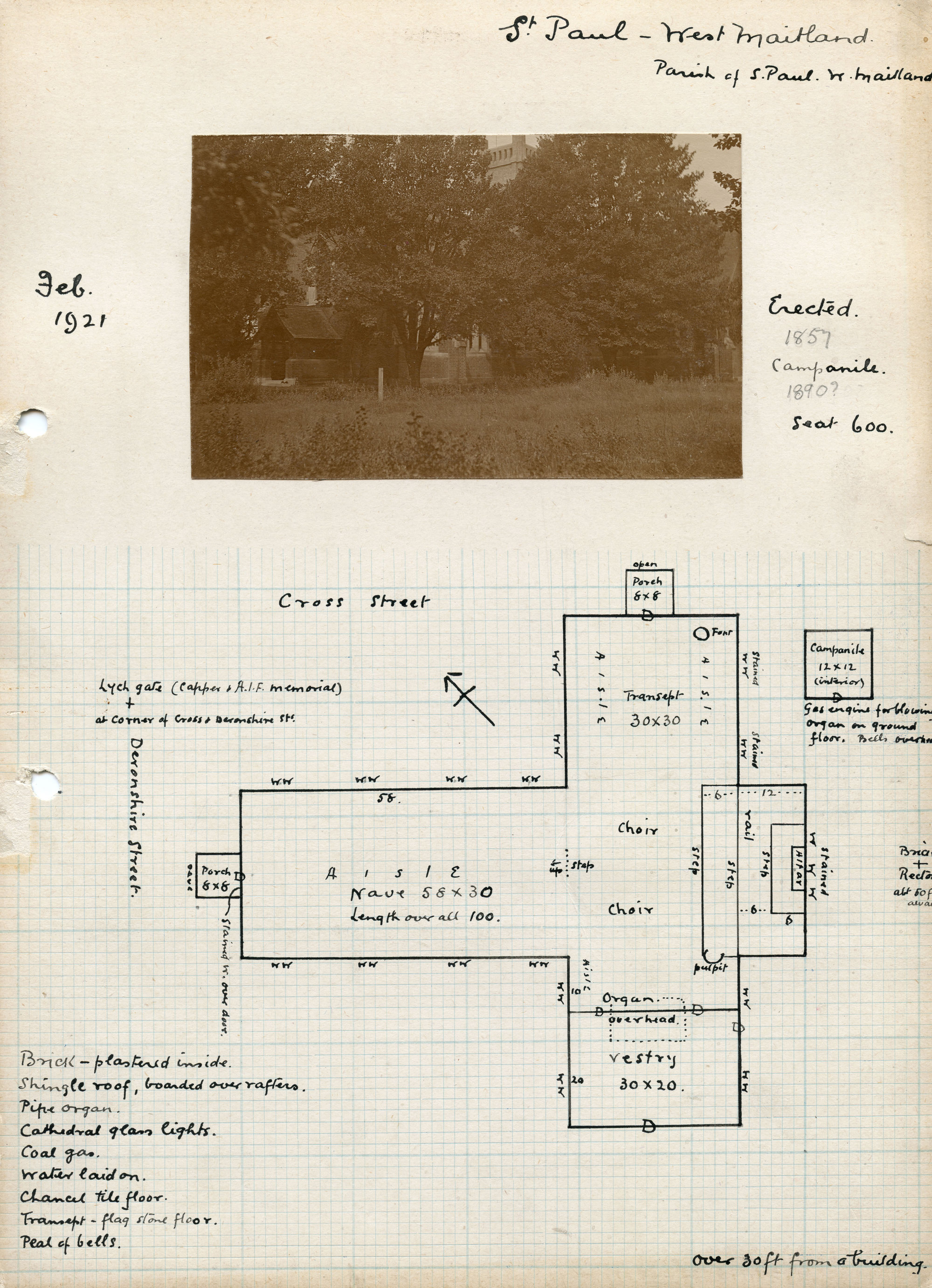 Plan of St. Paul's Church, situated in West Maitland, NSW, Australia. Living Histories, accessed 15/04/2026, https://livinghistories.newcastle.edu.au/nodes/view/21001