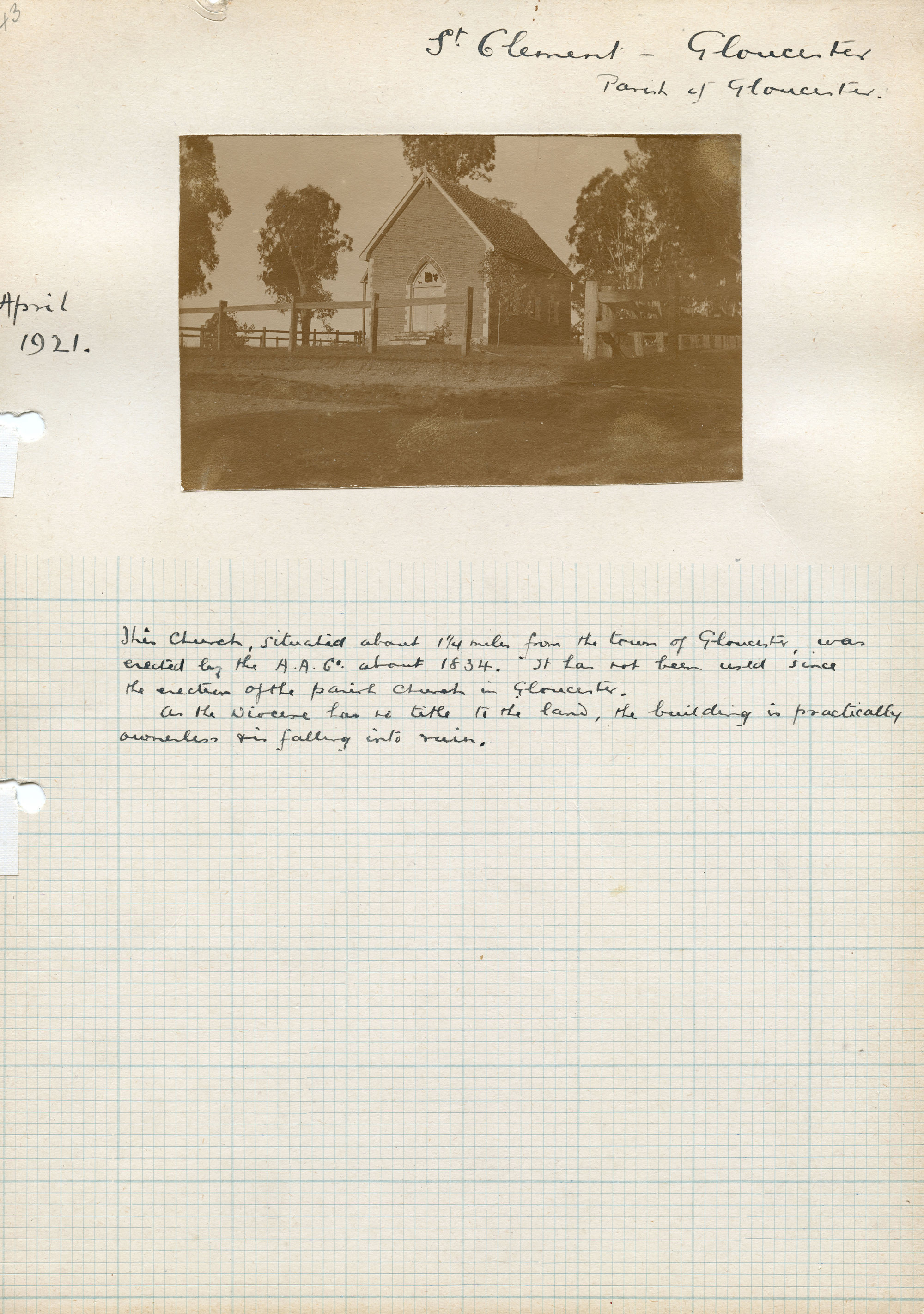 Plan of St. Clement's Church, situated in Gloucester, NSW, Australia