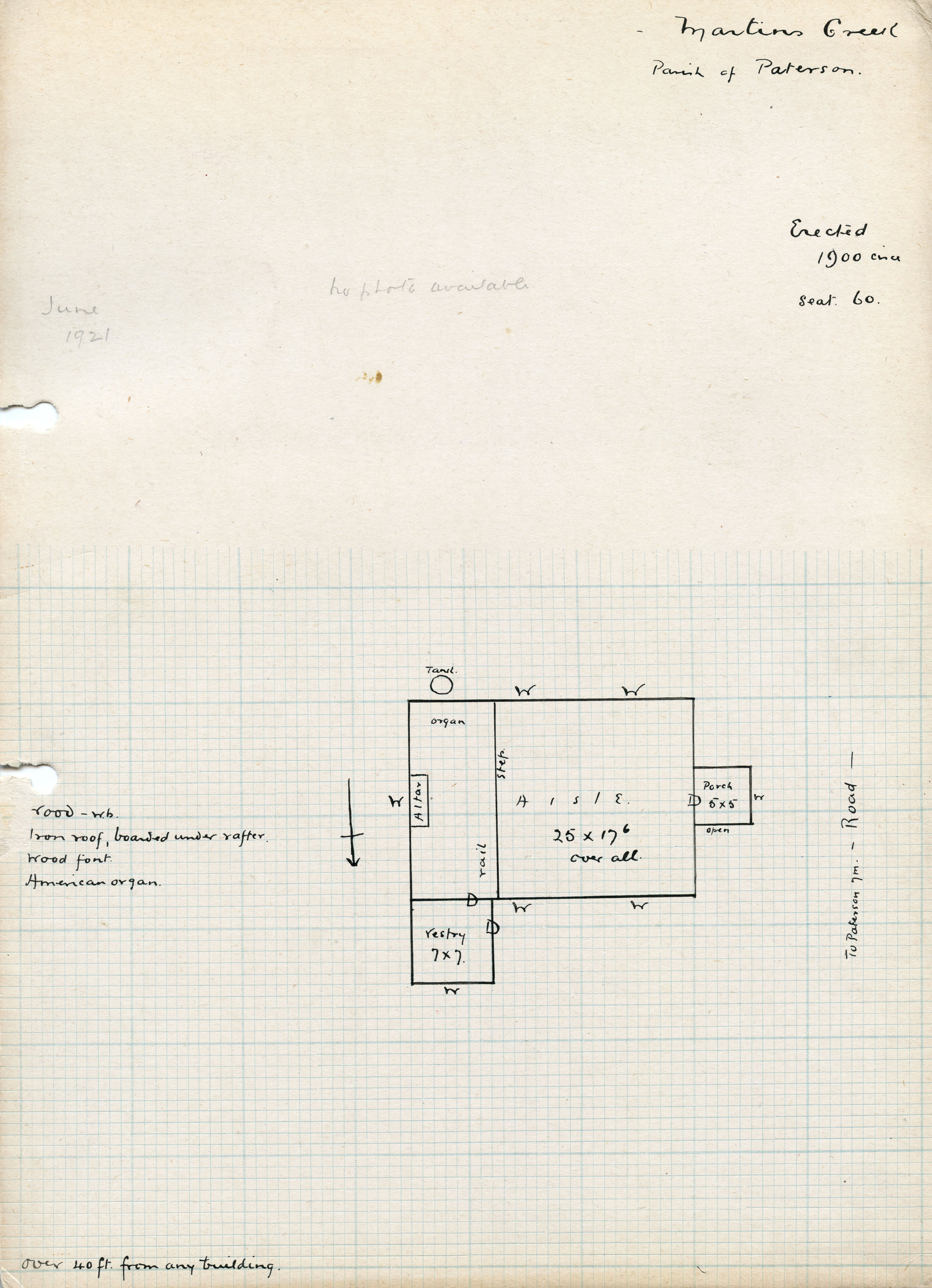 Plan of church situated in Martins Creek, NSW, Australia. Living Histories, accessed 07/02/2026, https://livinghistories.newcastle.edu.au/nodes/view/21208