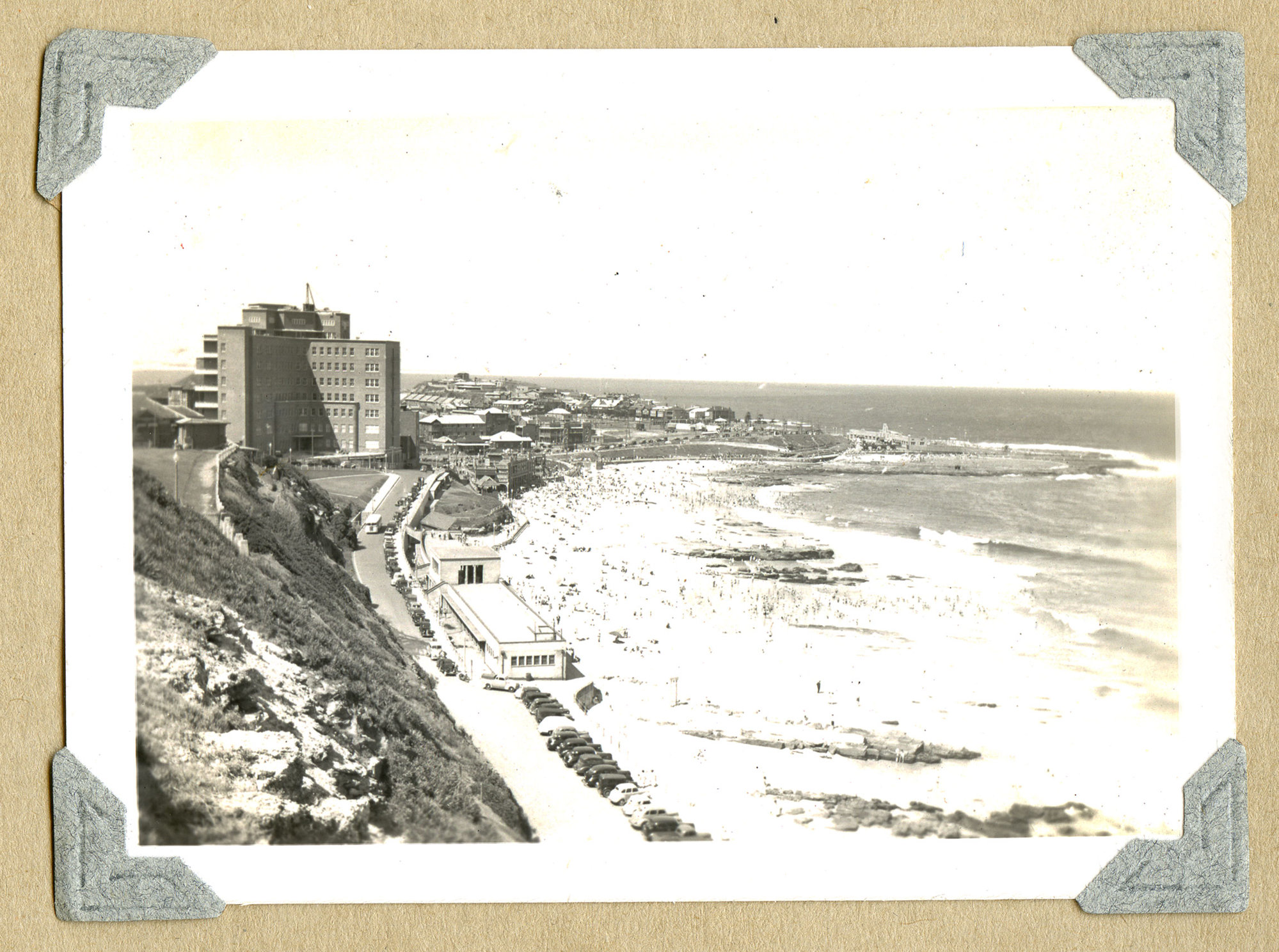 Overlooking south Newcastle beach from rise above Fletcher park, [1950s] ([1950s]), [dbrown-album-3-006-2]. Living Histories, accessed 19/02/2026, https://livinghistories.newcastle.edu.au/nodes/view/2142