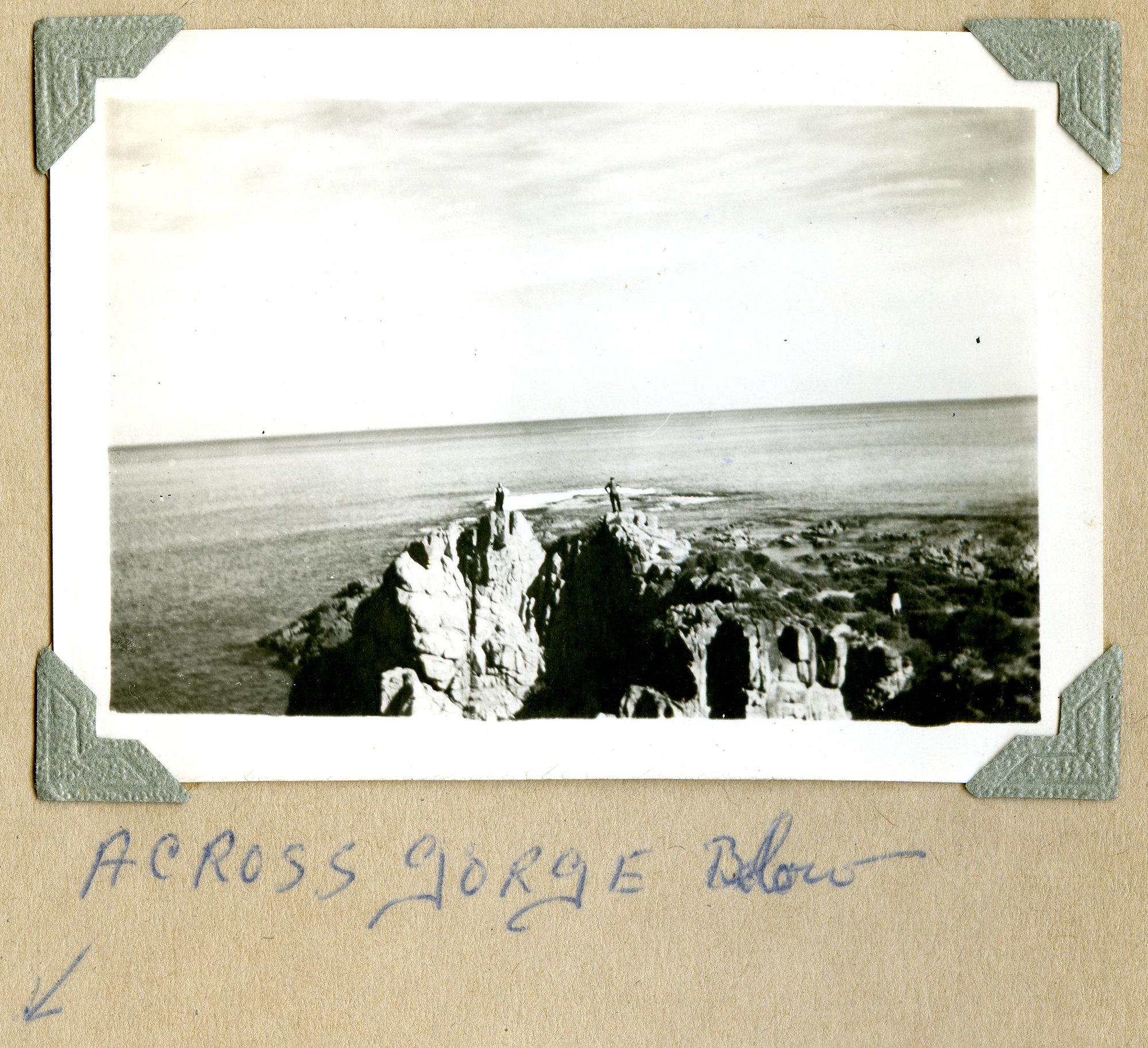 Across gorge at Anna Bay, NSW, c. 1940s ([1940s]), [dbrown-album-3-003-2]. Living Histories, accessed 10/03/2026, https://livinghistories.newcastle.edu.au/nodes/view/2161