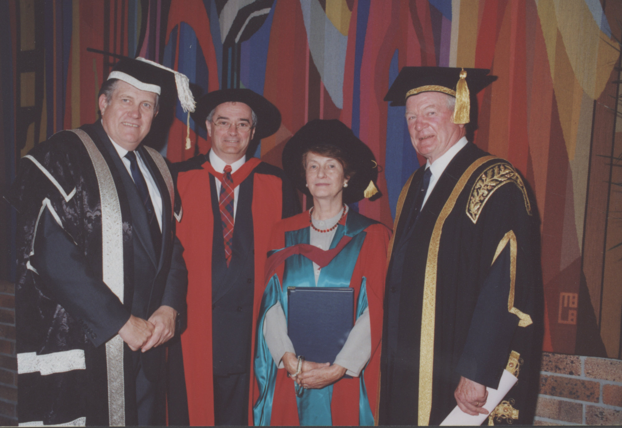 Vice-Chancellor, Professor Roger Holmes, Terry Lovat, an unidentified woman, and Chancellor Ric Charlton, the University of Newcastle, Australia - May, 2000