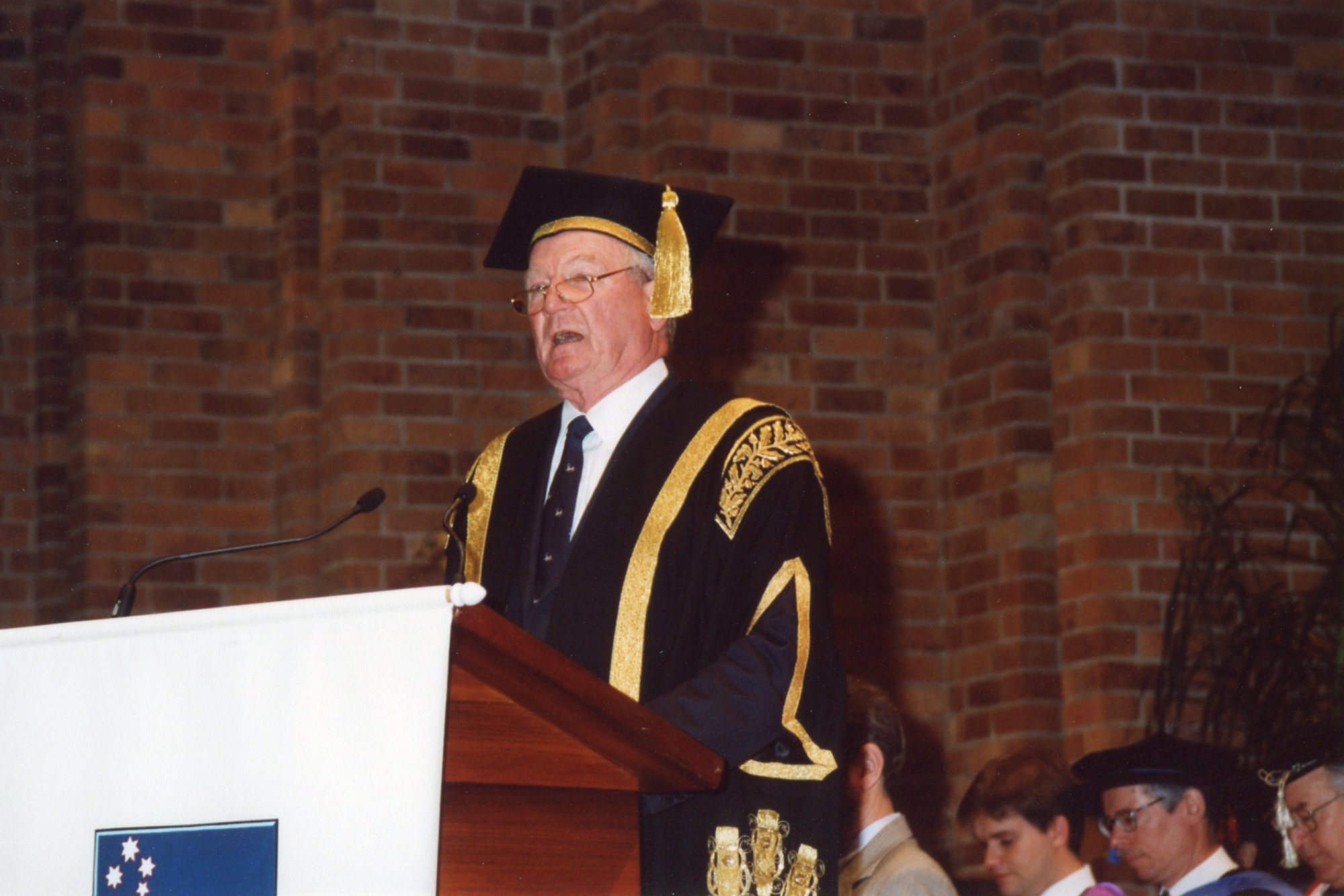 Chancellor Ric Charlton addresses the graduation ceremony audience, the University of Newcastle, Australia - May, 2000