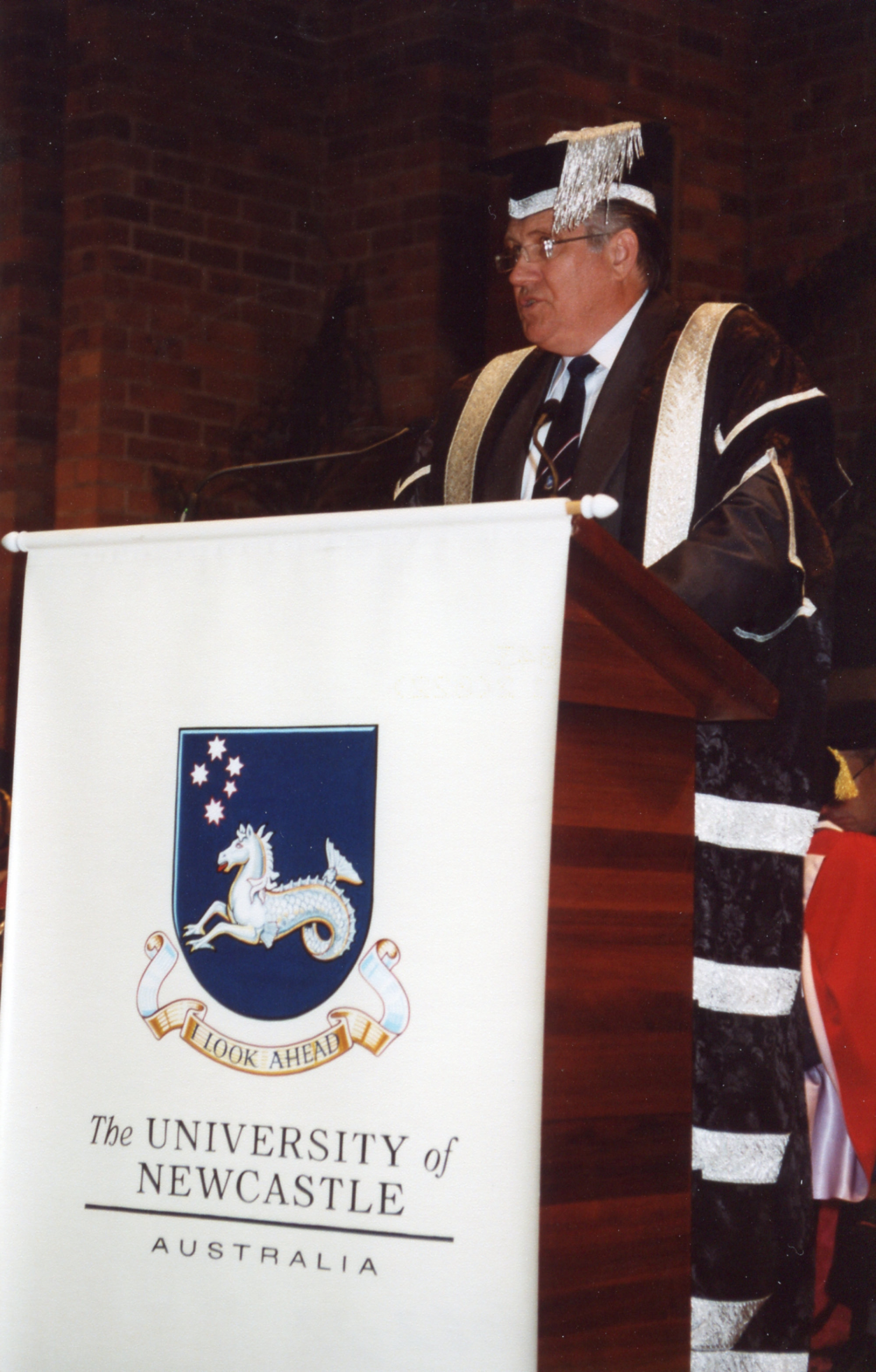 Vice-Chancellor, Roger Holmes addresses the graduation ceremony audience, the University of Newcastle, Australia - May, 2000