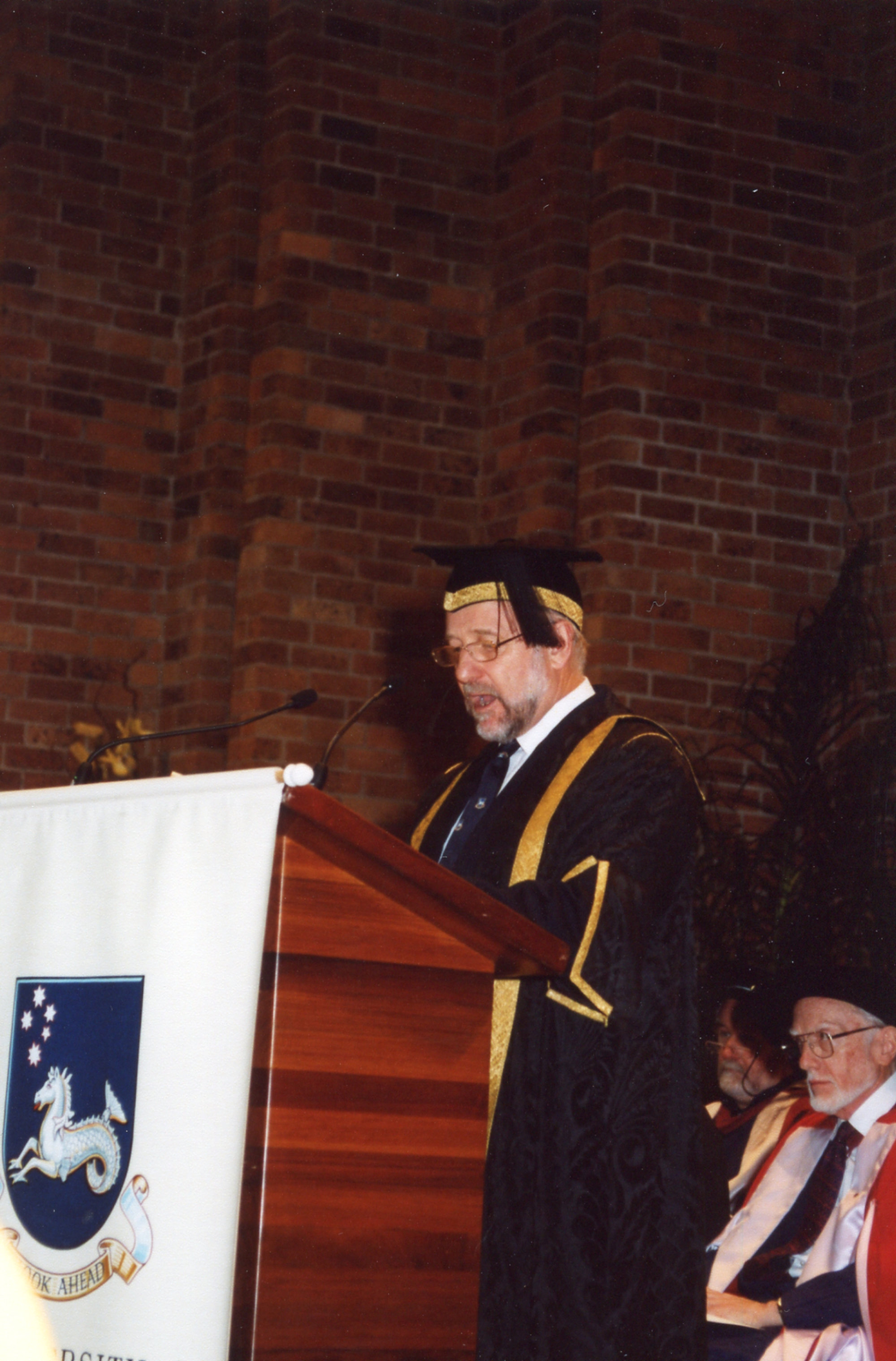 Deputy Chancellor Trevor Waring addresses the graduation ceremony audience, the University of Newcastle, Australia - May, 2000