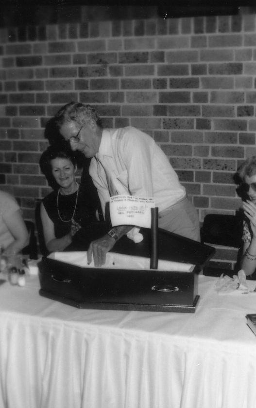 Neil Pettigrew with an unidentified woman at a function [possibly his retirement], the University of Newcastle, Australia - 1991