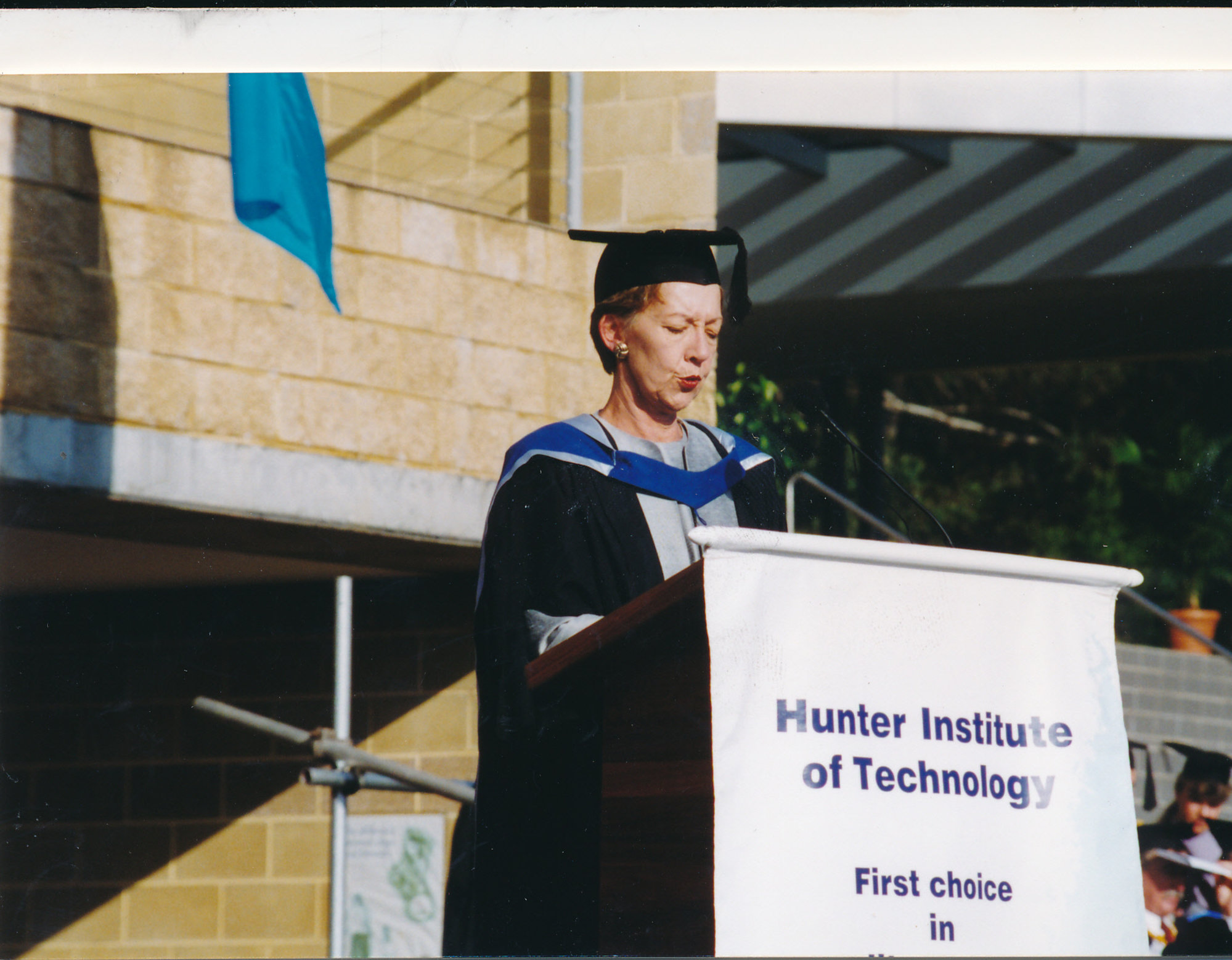 Gaye Hart speaking at Hunter Institute of Technology ceremony, Ourimbah [n.d.], [B011_IMG5921]. Living Histories, accessed 14/02/2026, https://livinghistories.newcastle.edu.au/nodes/view/23958