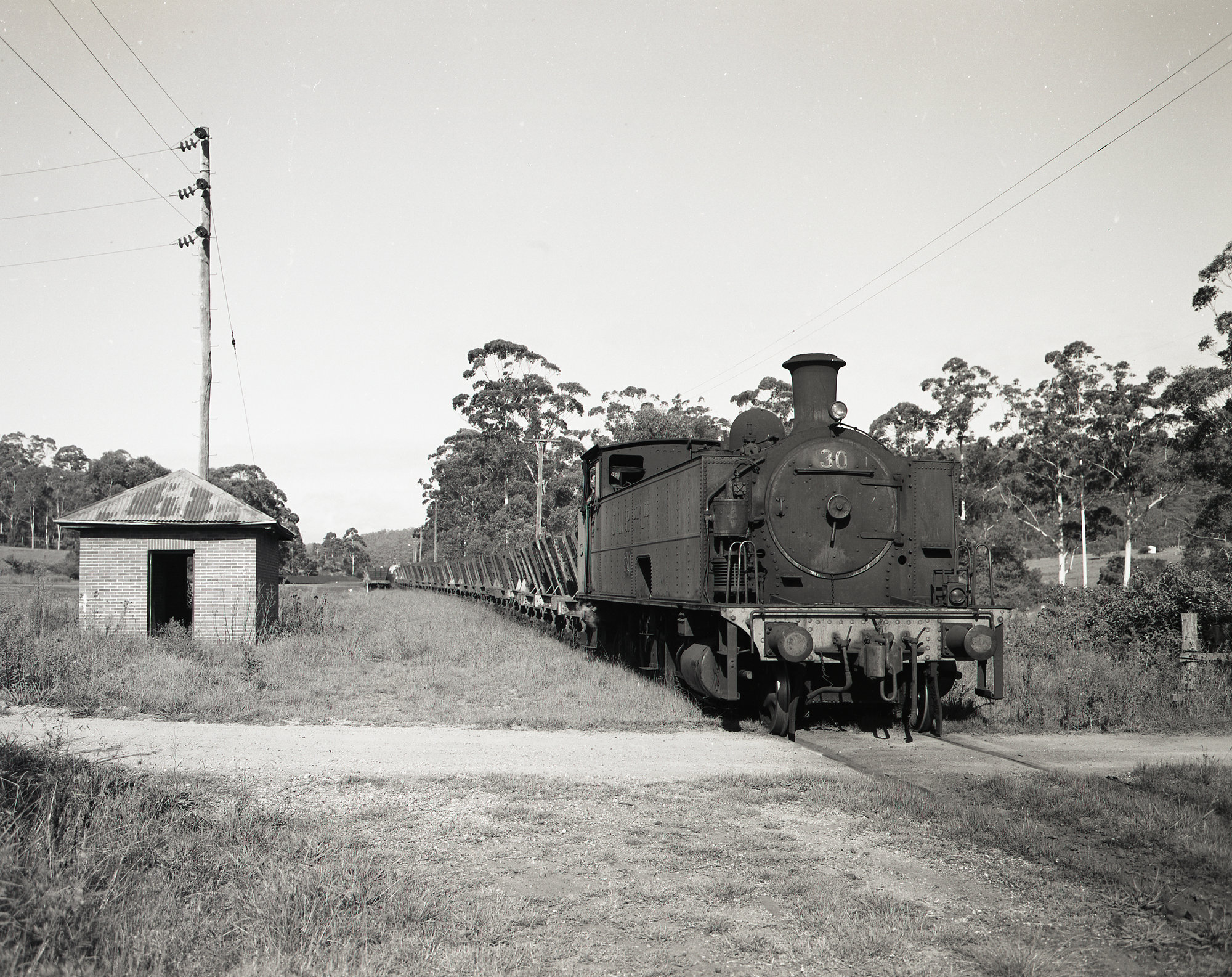 Locomotive 30 at Doghole, NSW, 22 March 1985 (1985), [BRAN392_002]. Living Histories, accessed 16/03/2026, https://livinghistories.newcastle.edu.au/nodes/view/25383