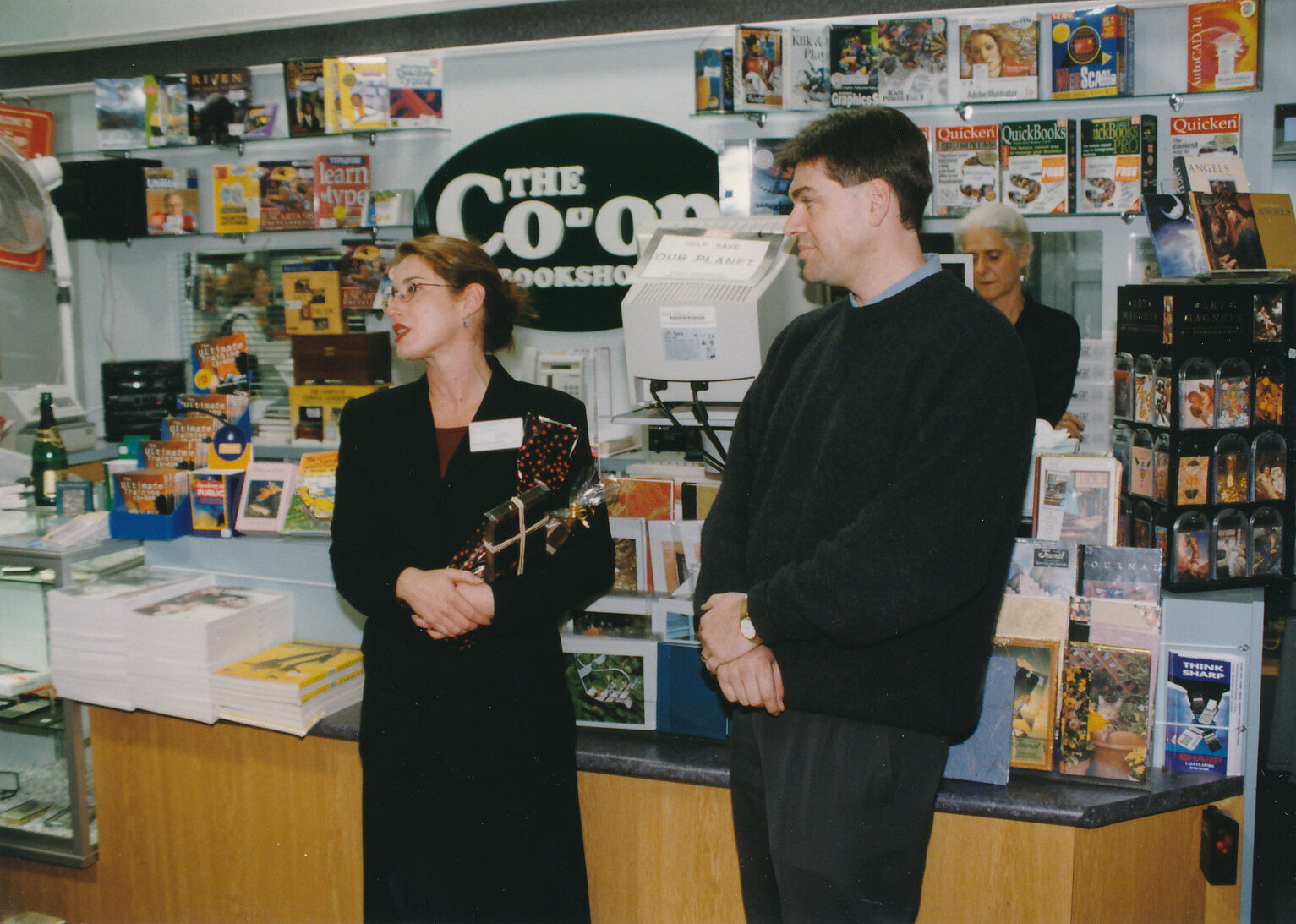 Unidentified people at the Co-Op Bookshop, Central Coast Campus [book launch] [n.d.].