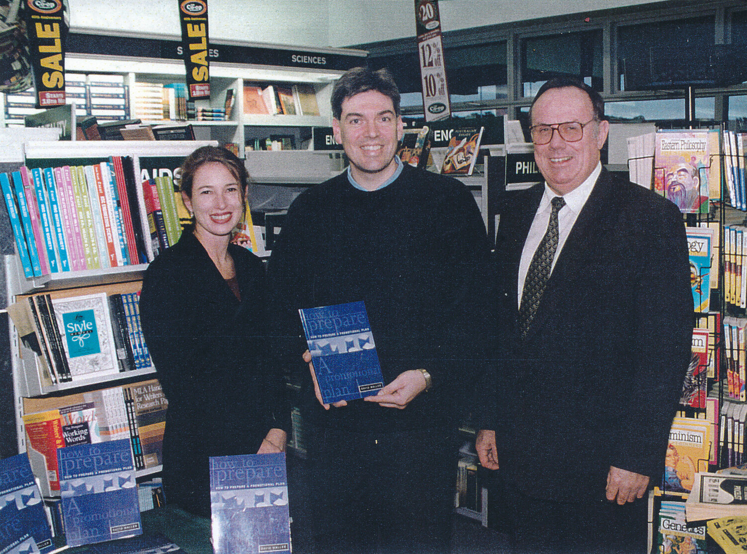 Unidentified people and Professor Les Eastcott at the Co-Op Bookshop, Central Coast Campus [book launch] [n.d.].
