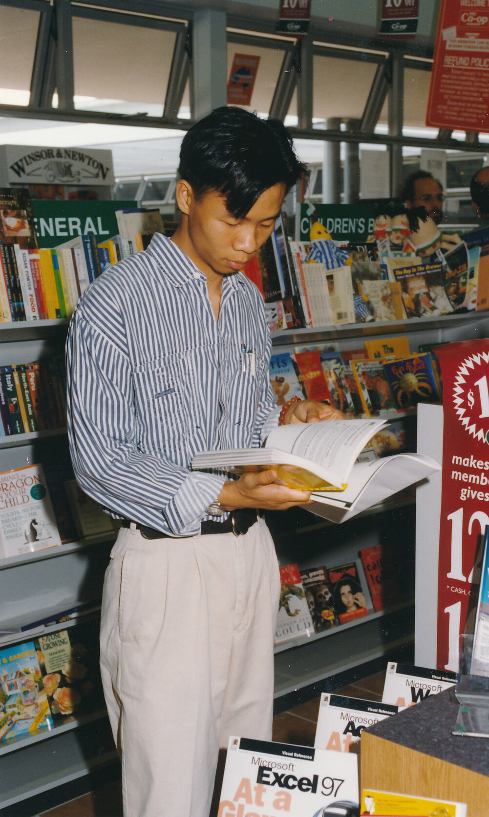 Unidentified person browsing in the Co-Op Bookshop, Central Coast Campus [n.d.]., [B008_IMG4157]. Living Histories, accessed 19/03/2026, https://livinghistories.newcastle.edu.au/nodes/view/26206