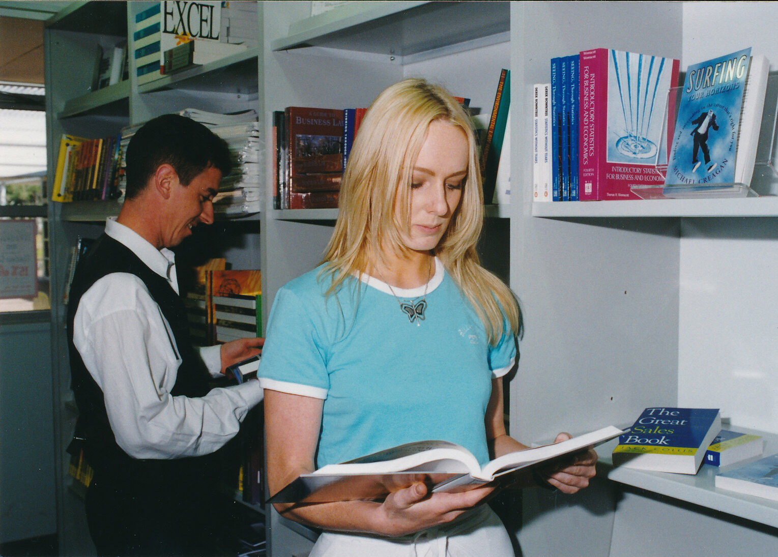 Unidentified people in the Co-Op Bookshop, Central Coast Campus [n.d.].